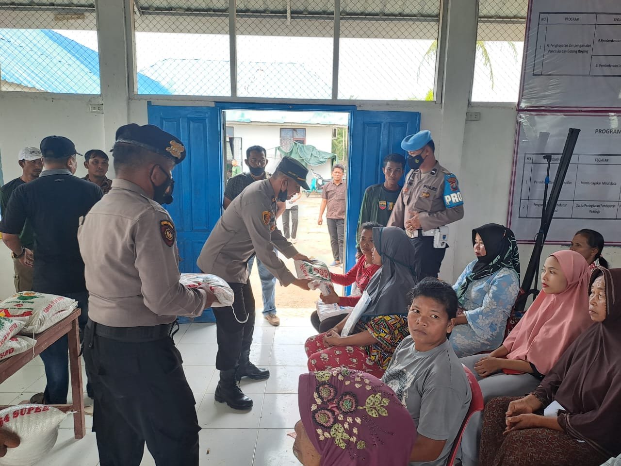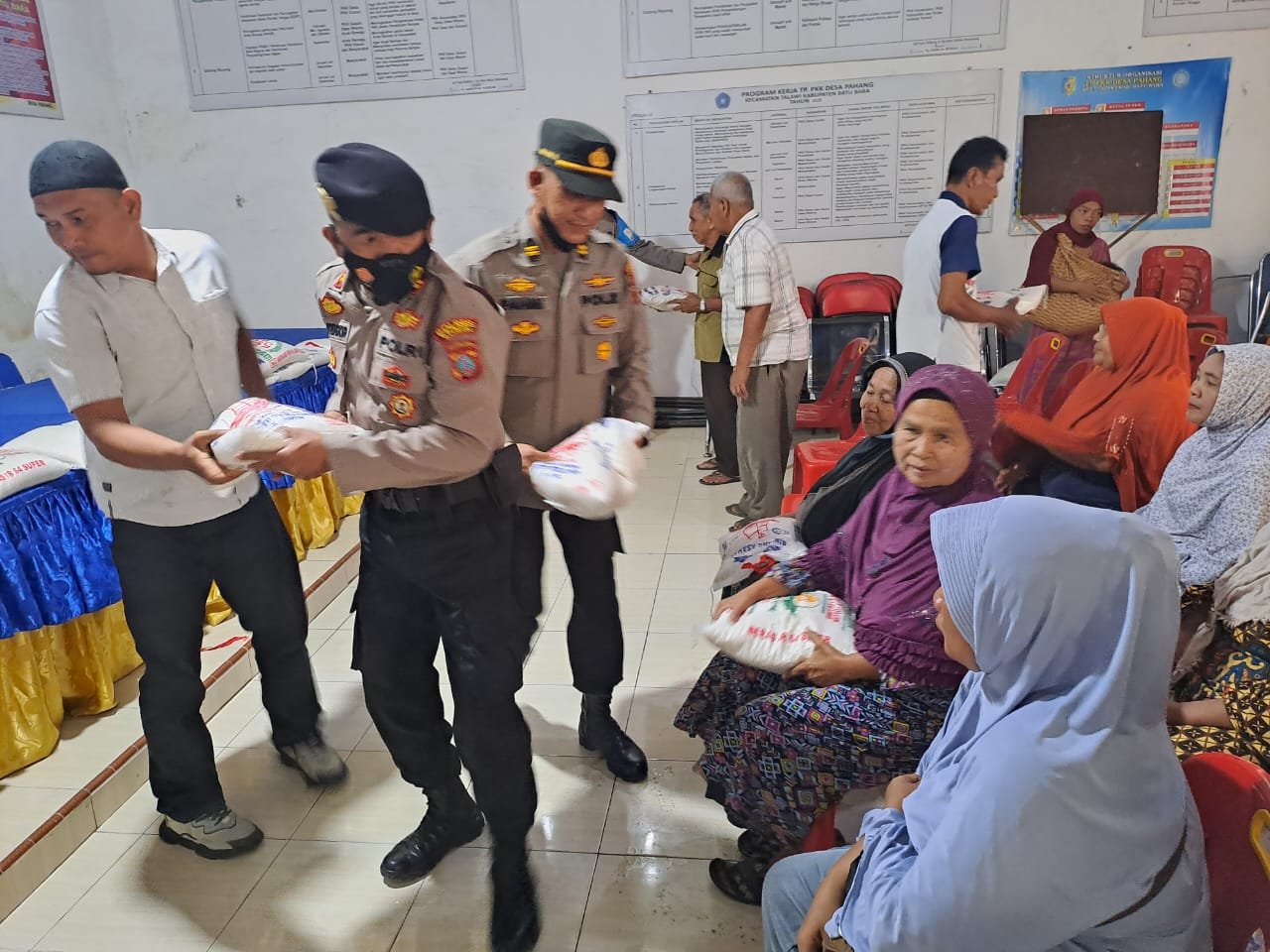 100 Karung Beras Disalurkan,Kapolsek Labuhan Ruku Peduli Warga Kurang Mampu