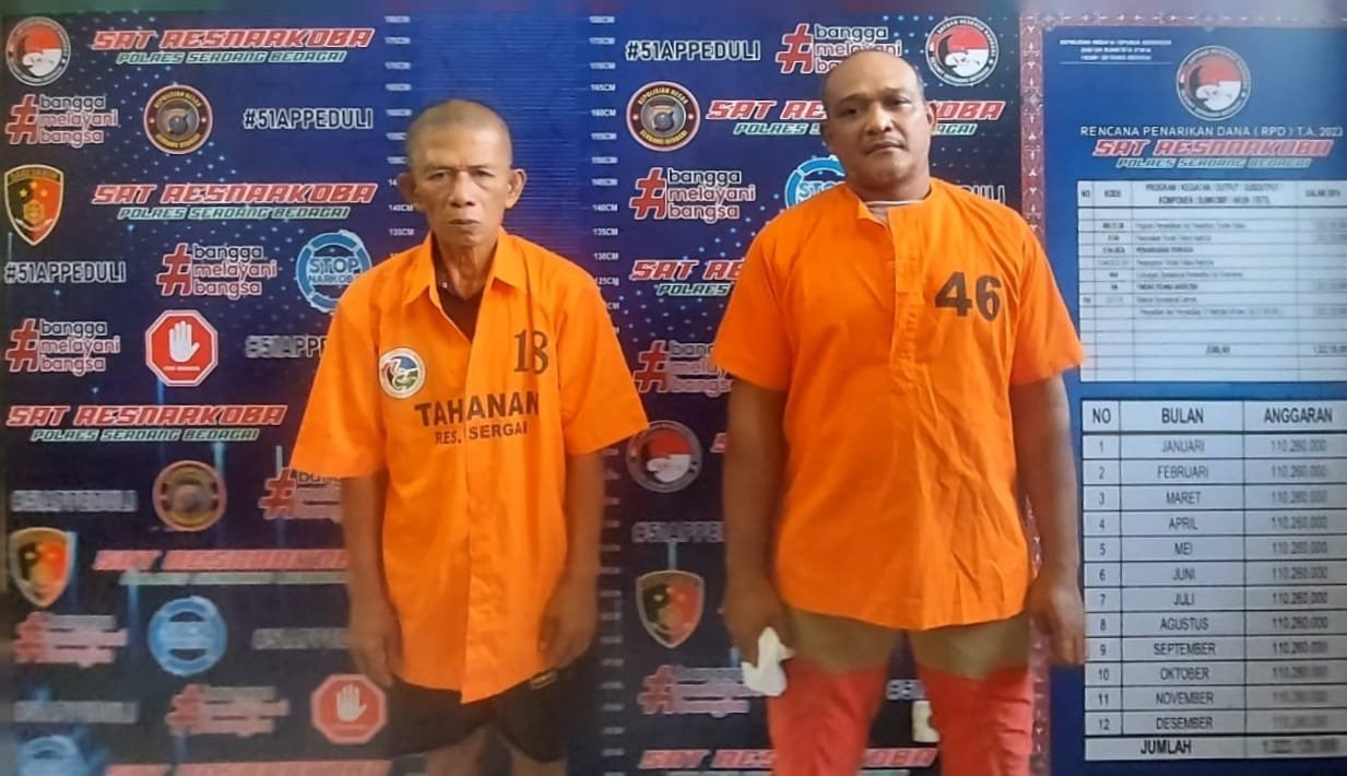 Maraknya Narkotika jenis ganja beredar di Wilkum Polres Sergai, tepatnya di Gang Remaja I Gubang Gajah Kec Tanjung Beringin Kab. Serdang bedagai dan Dusun II Desa Nagur Kec Tanjung Beringin Kab Serdang Bedagai, sehingga membuat personel Satreskoba Polres Sergai melakukan penangkapan terhadap 2 orang pelaku, HB alias Adek (42) warga Jalan Sena Desa Pekan Tanjung Beringin Kec. Tanjung Beringin serta SN als Unding (59) warga Dusun II Desa Nagur Kec Tanjung Beringin Kab Serdang Bedagai. Senin, 11/12/2023 siang.