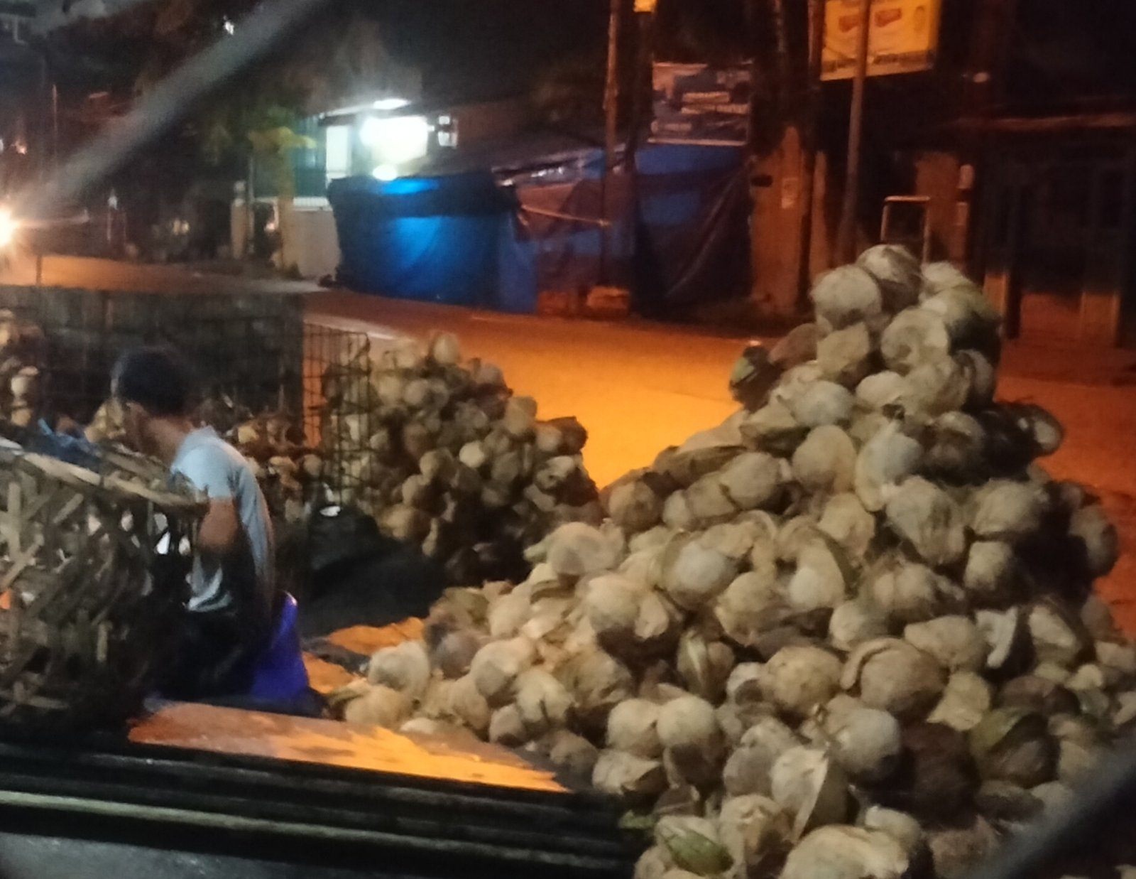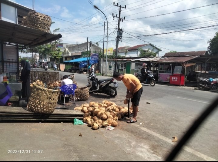 Sampah dari batok kelapa yang di biarkan menumpuk padat begitu saja di badan Jalan di lokasi Itu. ,pasalnya hampir setiap harinya juga mesin pemarut kelapa yang ia gunakan untuk mengkukur ( memarut ) kelapa ,terus saja berbunyi bising,terlebih saat Adzan Subuh dan Ibadah lainya sedang berlangsung,sehingga sangat mengganggu ketenteraman dan kenyaman warga lainnya,Khususnya masyarakat yang ada di sekitar tempat Itu,