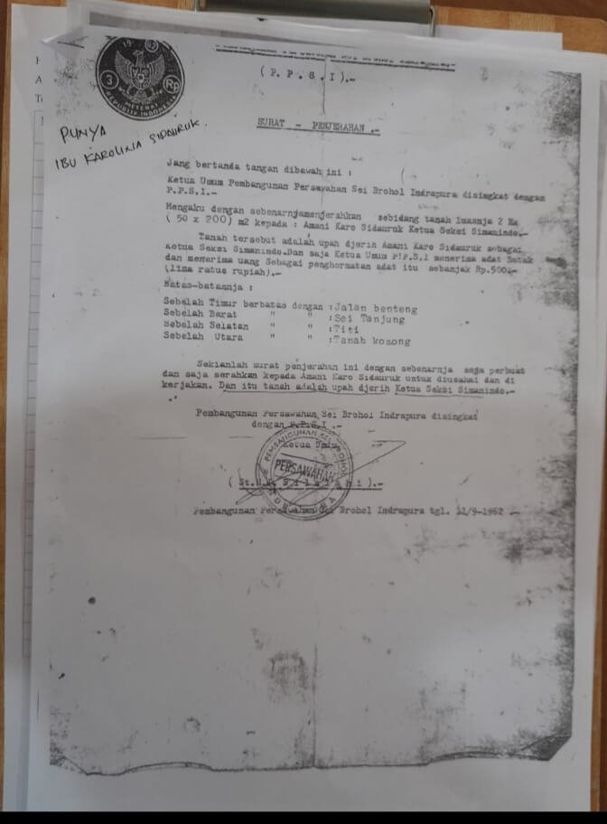 Pada pertemuan itu pihak Carolina sidauruk menunjukkan surat tanah sebagai bukti bahwa tanah yg diuasahai pihak Silalahi selama puluhan tahun adalah miliknya.