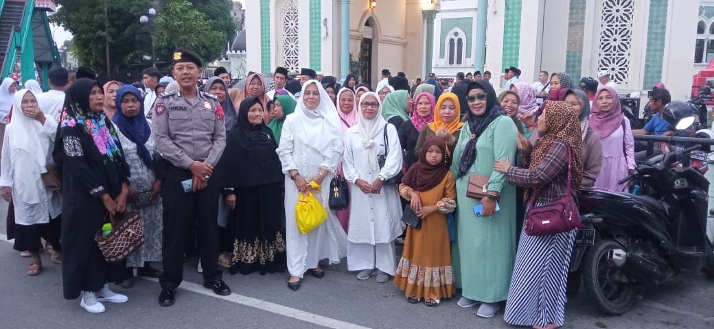 Bersama puluhan warga, Ketua Ranting Bhayangkari Pantai Labu Hadiri Gebyar Seni budaya Etnis dan Agama Serta Rattibul Haddad di Istana Maimun. Senin (27/11/2023).
