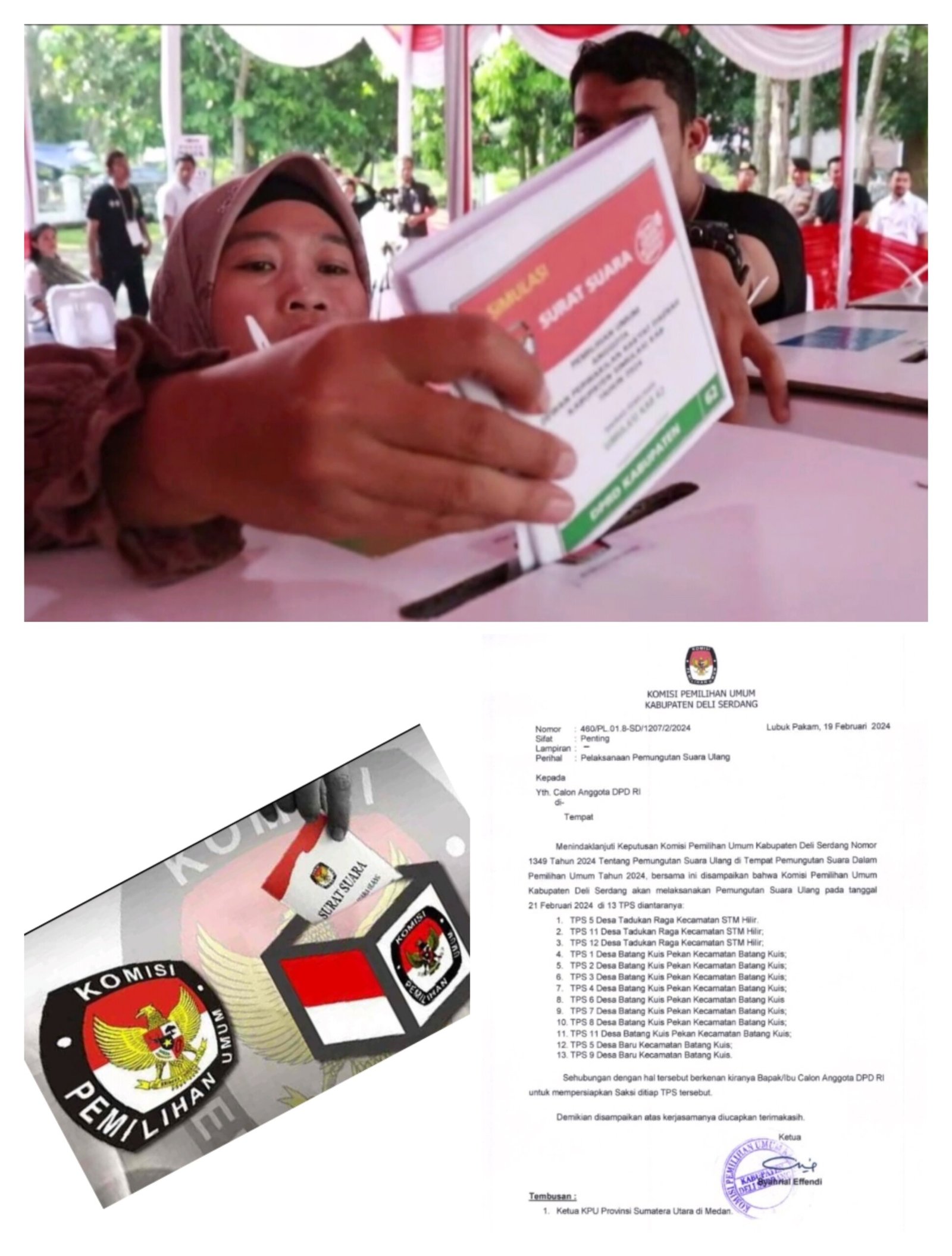 Deli Serdang, Gnewstv.id : Sebanyak 13 Tempat Pemungutan Suara (TPS) Dari 2 Kecamatan yakni Kecamatan Batang Kuis dan Kecamatan STM Hilir, Besok Rabu (21/2/2024) akan menggelar Pemungutan Suara Ulang, dan dikuatkan dengan Surat Edaran KPU Deli Serdang yang bernomor 460/PL.01.8-SD/1207/2/2024, tertanggal 19 Februari 2024 yang ditanda tangani Ketua KPU Deli Serdang Syahrial Effendi.