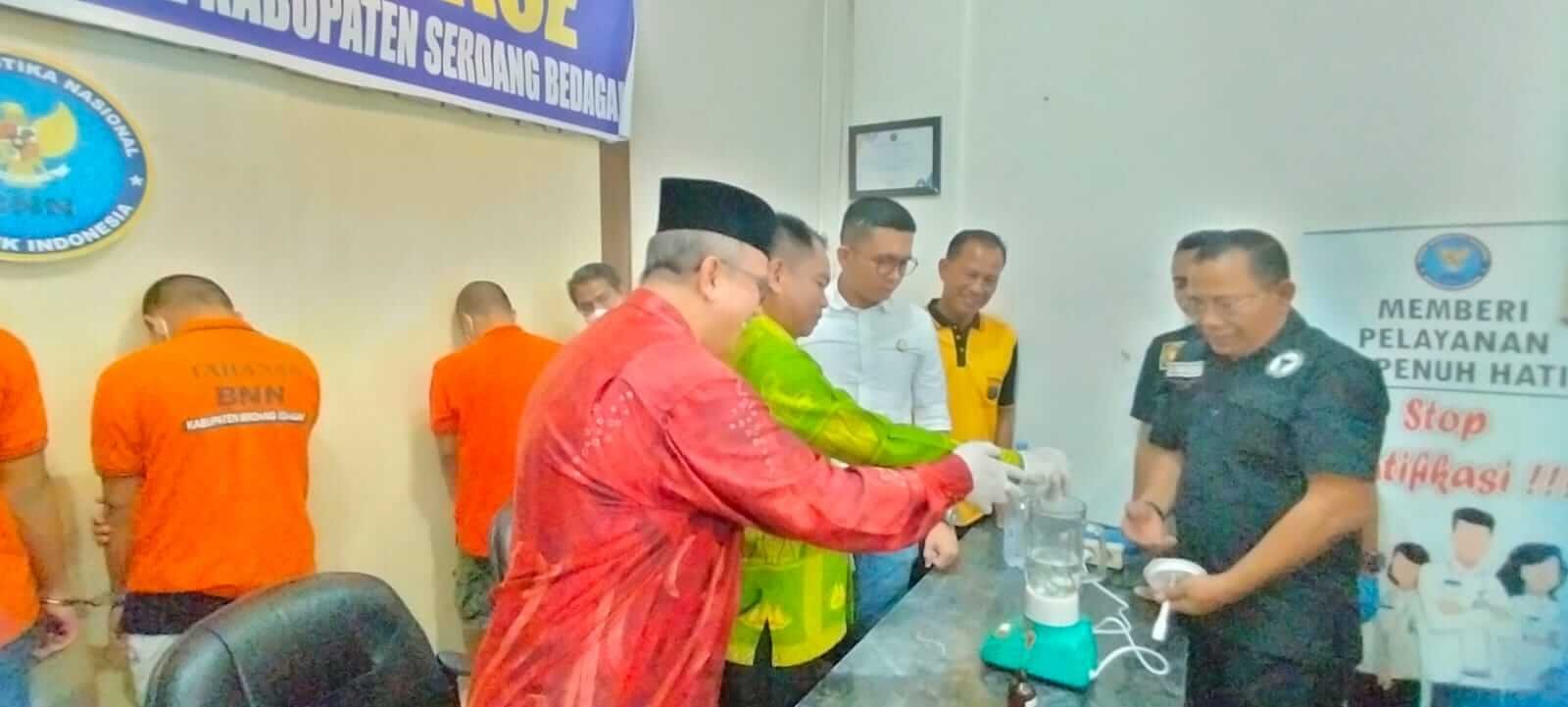 Setelah dilakukan uji lab oleh pihak Lab Poldasu yang langsung di saksikan oleh Bupati H Darma Wijaya dan Kepala BNN K Sergai serta Pihak Kepolisian Resort Serdang Bedagai dan Tokoh masyarakat bahwa zat tersebut benar Narkoba jenis Shabu-shabu atau zat Metamfetamina golongan satu maka barang haram tersebut di masukkan ke blender untuk di musnahkan dan terakhir di buang ke toilet.