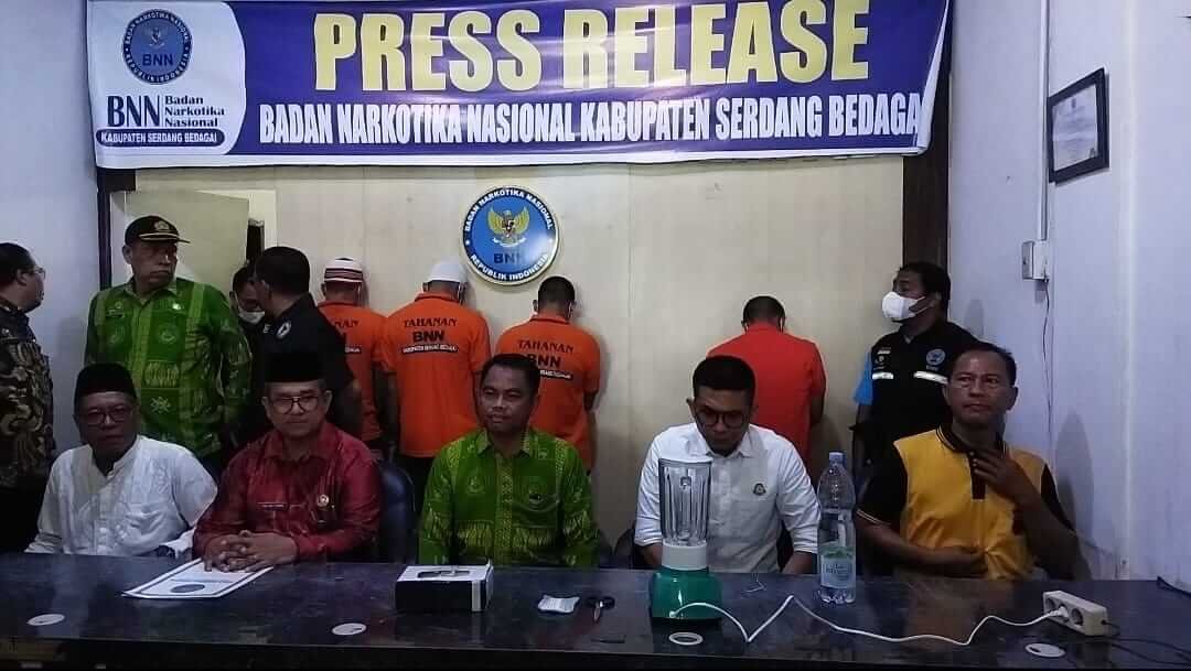 Kepala BNN K Sergai Ir. Pinondang Poltak Marganda, M.Si si dampingi Kasi Berantas Kompol Antonius Pangaribuan dalam sambutannya, ” Pemusnahan barang bukti ini hasil penangkapan dari empat tersangka yang kami tangkap pada bulan April yang lalu dan akan kita majukan hingga sampai ke persidangan nanti, dengan pasal 114 ayat (2) sub 112 ayat (2) UU RI No. 35 Tahun 2009 tentang Narkotika atau ancaman pidana paling singkat 6 Tahun dan paling lama 20 Tahun “, ungkap Poltak.