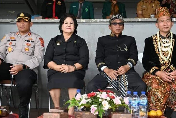 Bupati Karo Cory Sriwati Sebayang saat menghadiri peringatan HAB di Lapangan Samura Kabanjahe.