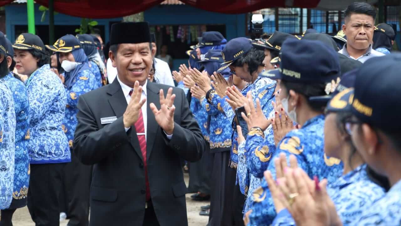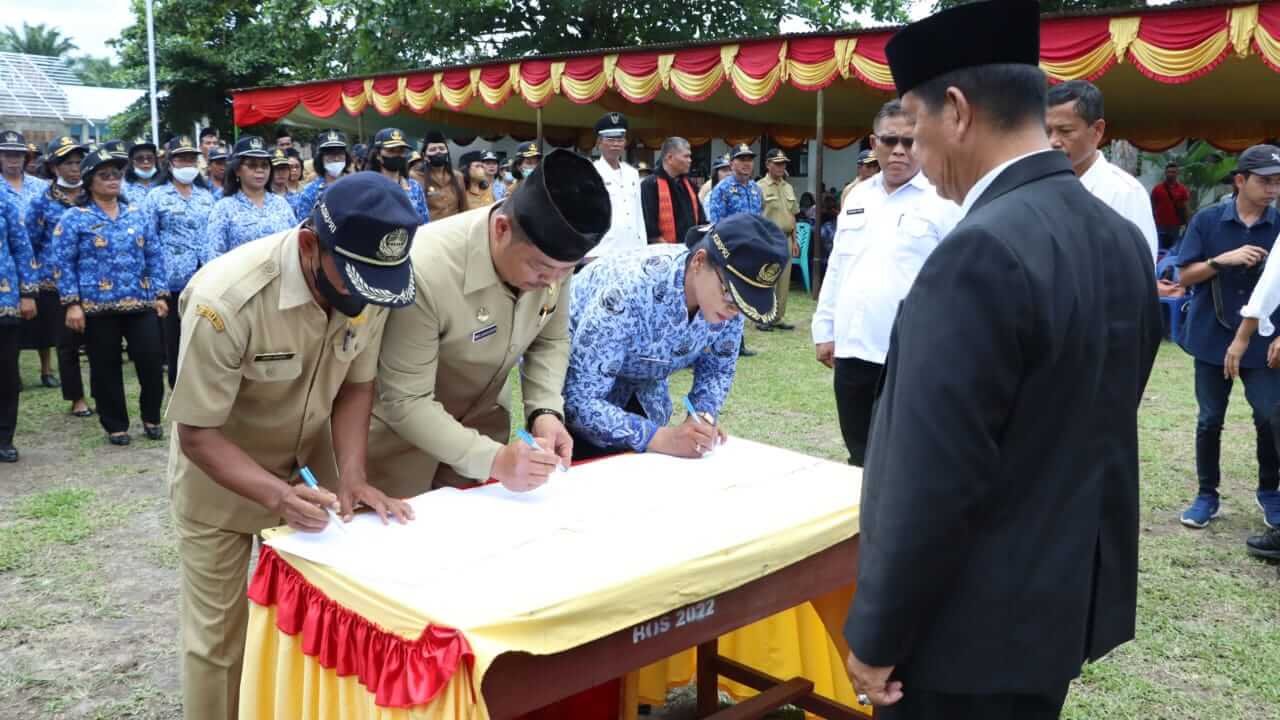 Bupati Simalungun Radiapoh Hasiholan Sinaga SH MH melantik dan mengambil sumpah janji PNS dalam jabatan administrator dan pengawas sekolah sebanyak 48 orang dan 516 orang Kepala Sekolah Dasar (SD) Negeri di lingkungan Pemkab Simalungun, bertempat di halaman SMP Negeri 1 Huta Bayuraja, Kabupaten Simalungun,Sumut, Rabu (5/10/2022).