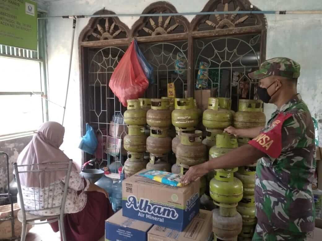 Guna memantau sekaligus memastikan ketersediaan Gas Elpiji 3 Kilogram (Kg) agar tepat sasaran, Babinsa Koramil 17/Idi Tunong Kodim 0104/Aceh Timur Serka Ulur Cahyo menyambangi pangkalan Gas Elpiji 3 kg bersubsidi dan non subsidi milik Eviyanti, di Desa Bukit Tukuh, Kecamatan Idi Tunong, Kabupaten Aceh Timur, Selasa (19/04/2022).