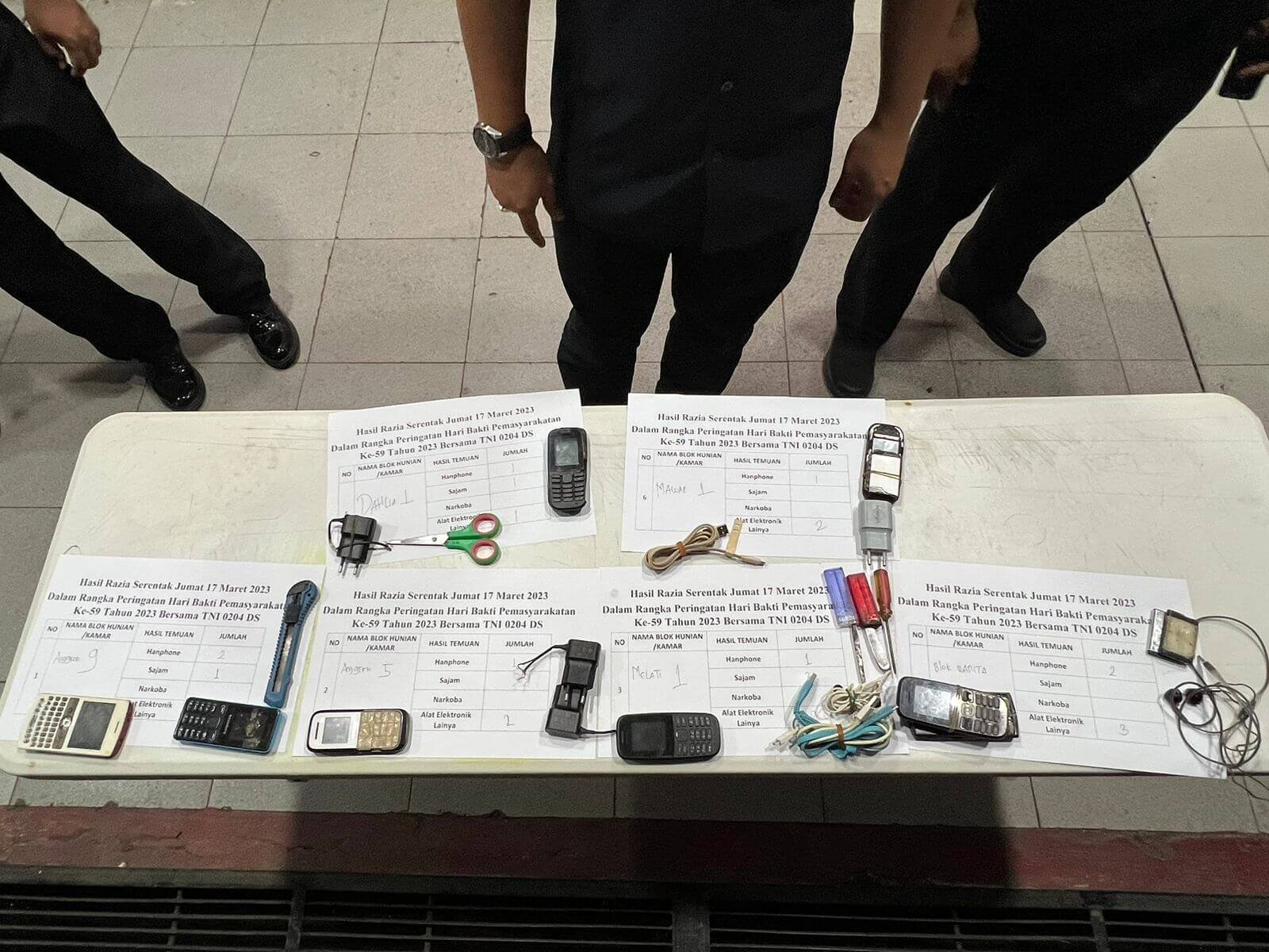 Razia berlangsung di seluruh blok Narapidana dan Tahanan hunian lapas, yaitu Kamar Anggrek 09, Anggrek 05, Mawar 01, Melati 01, Dahlia 01 dan Blok Wanita.