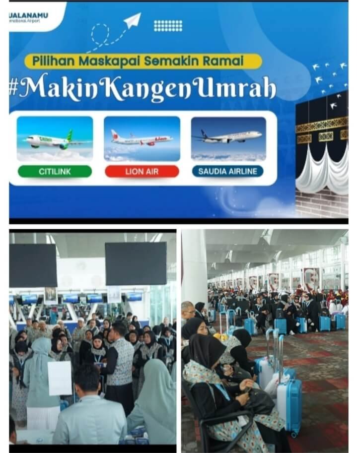 Bandara Internasional Kualanamu telah membuka rute penerbangan langsung tujuan Madinah dan Jeddah (Mekkah) dengan tiga maskapai, yaitu Lion Air, Citilink, dan Saudia Airline. calon jemaah umroh mempunyai berbagai pilihan waktu penerbangan karena masing-masing maskapai tersebut membuka frekuensi keberangkatan penerbangannya hampir setiap hari,dimana pilihan yang dapat dipilih oleh calon jemaah adalah sebagai berikut :
