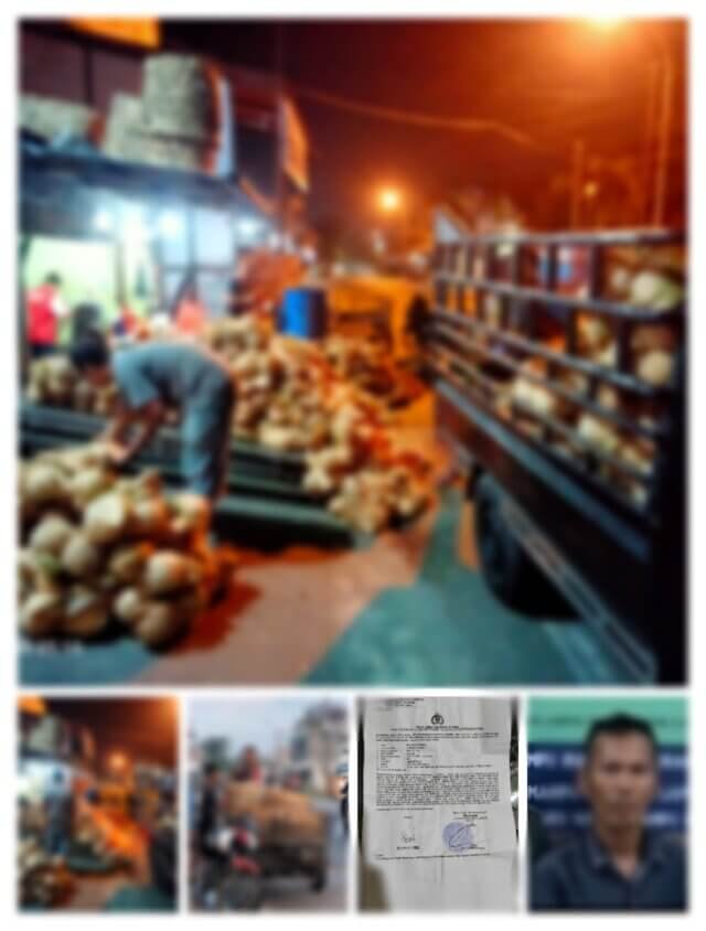 Keterangan Gambar- terduga Pelaku Abd Wahab dan Kegiatan Penurunaan ratusan buah kealapa dari mobil pengankut yang di mulai sejal pukul 02.00 Dini hari dan bunyi musik keras dari armada mobil pengangkut Kealapa, serta mesin parut Kelapa yang beraktifitas Pukul 04.30 Walau Ibadah Azhan Subuh sedang Berkumadang ,bahkan sampai siang harinya dengan memakai Badan Jalan di Jl Kf tandean ,Kelurahan Bandara Sakti,Kecamatan Bajenis ,kota Tebingtinggi, Sumut dan Sangat mengancam keselamatan para Pengguna Kendaraan yang melintasi jalan Itu.