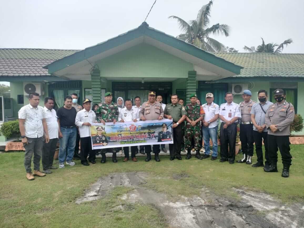 Dirgahayu TNI ke 77, segenap Personel Polsek Medang Deras serta Camat dan stafnya memberikan Surprise kepada Koramil 01 Medang Deras, Rabu(05/10/2022).