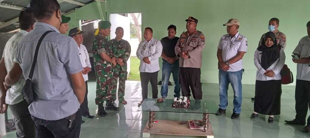 Kedatangan personel Poksek Medang Deras dan Camat serta staf disambut langsung oleh Dan Ramil 01 Medang Deras bersama personel laninya