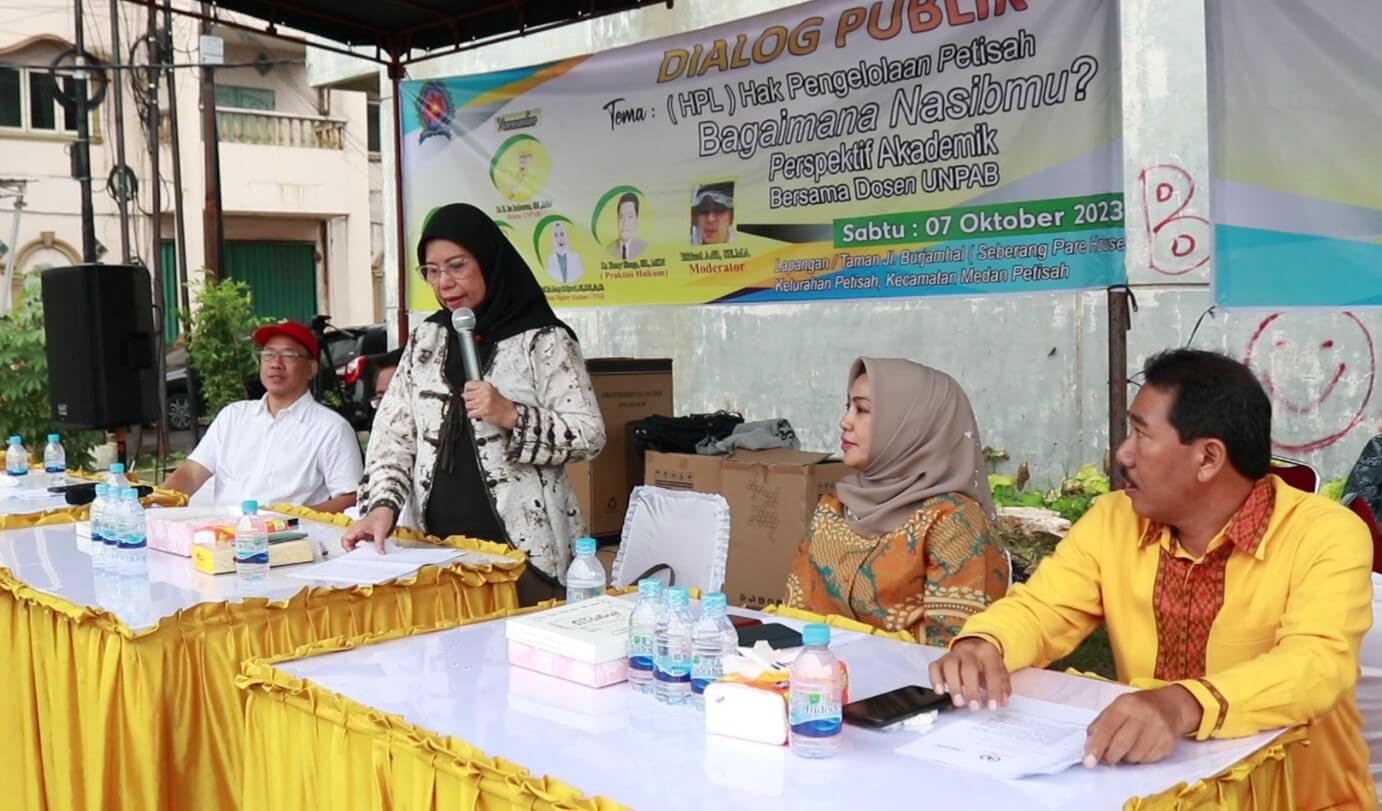 Selanjutnya Assoc Prof.Dr. Renny Maisyarah,S.E,M.Si,AK,CA selaku Praktisi Dosen Magister Akuntansi UNPAB yang mengangkat dari bidang akuntansi terkait konflik Petisah Tengah yang berada di lahan HPL Pemko Medan. Sedangkan Dr.Henry Sinaga,S.H,MKN selaku Praktisi Hukum menyampaikan tentang aspek hukum atas konflik yang dihadapi warga Petisah Tengah meskipun dalam kurun 7 tahun terakhir warga Petisah Tengah mesih berjuang lewat jalur non litigasi dan dalam Dialog Publik ini Henry juga menyampaikan kabar baik soal Peraturan Presiden (Perpres) Nomor 62 Tahun 2023 yang diterbitkan Presiden Joko Widodo pada Tanggal 3 Oktober 2023 lalu tentang Percepatan Pelaksanaan Reforma Agraria, dan dialog publik ini dipandu oleh moderator Efrizal Adil, S.E.M.A