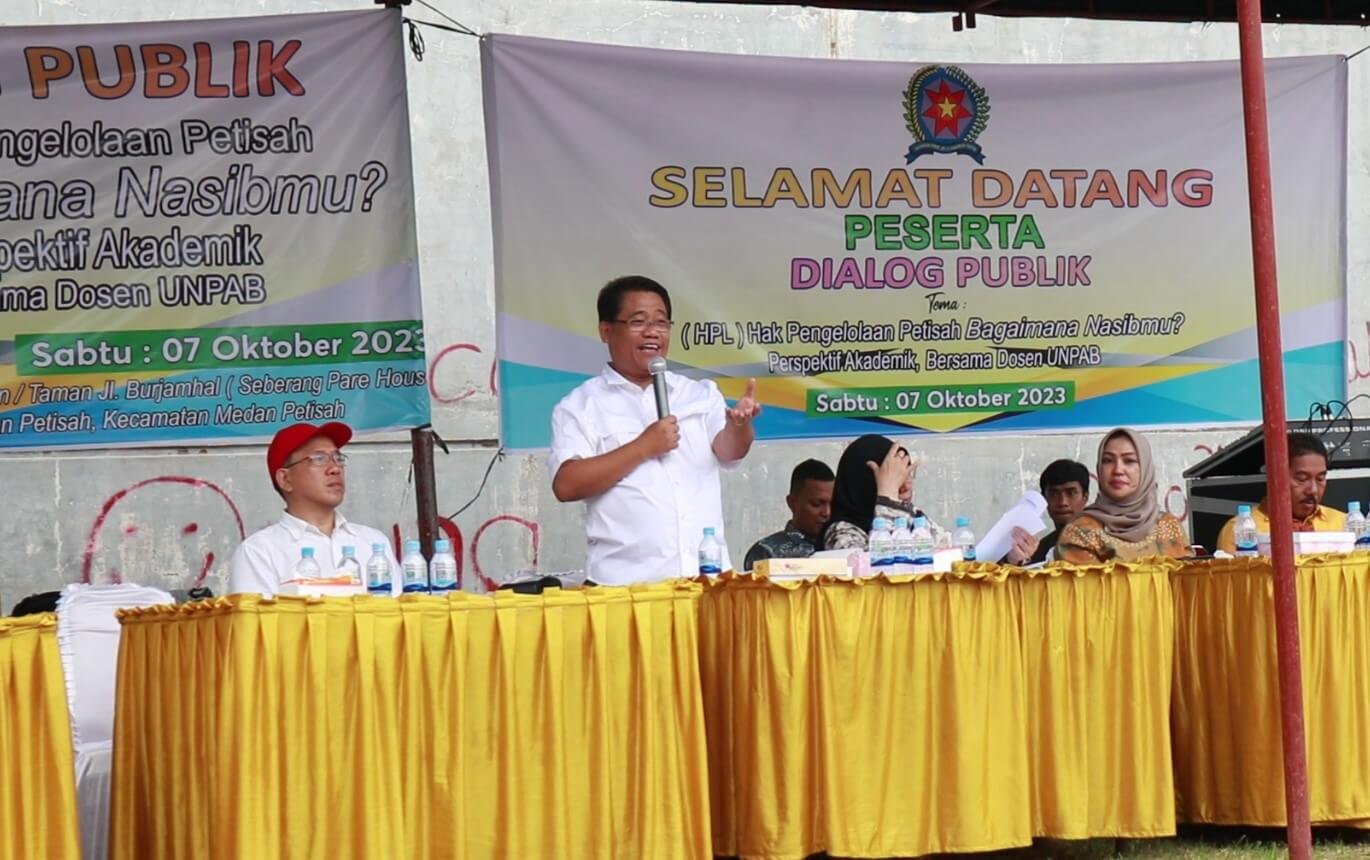 Diungkap Dalam Dialog Publik yang diinisiasi Pihak Akademisi Dari Universitas Pembangunan Panca Budi (UNPAB) berkolaborasi dengan Forum Petisah Bersatu (FPB), Pada Sabtu (7/10/2023) pagi di Lapangan Terbuka Jln.Burjamhal, Kelurahan Petisah Tengah, Kecamatan Medan-Petisah ,Kota Medan yang mengangkat Tema “Hak Pengelolaan (HPL) Petisah Bagaimana Nasibmu ? Persfektif Akademik Bersama Dosen UNPAB, bahwa Presiden Joko Widodo mengeluarkan Peraturan Presiden (Perpres) Nomor 62 Tahun 2023 pada 3 Oktober 2023 lalu yang merupakan kabar baik untuk Ribuan Warga Petisah tengah.