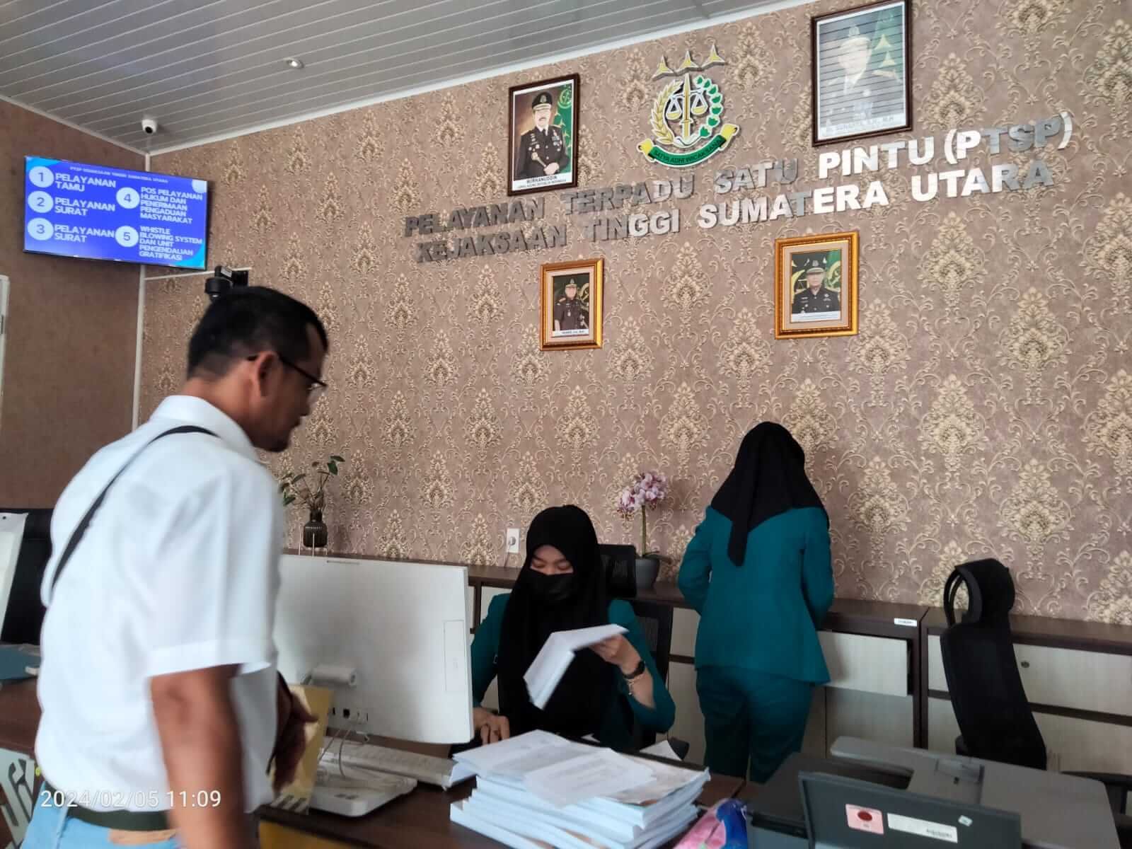 Surat tembusan Klarifikasi Pertama nomor.001/Ka/PERWK.LG/SP/I/2024, DPC LSM GEMPUR,Kab Sergai, di terima Langsung  Pihak Petugas kantor Kejaksaan Tinggi Sumatera Utara ( KEJATISU)  dan di tanda tangani Petugas Penerima Surat, bernama Ibu Ayu.