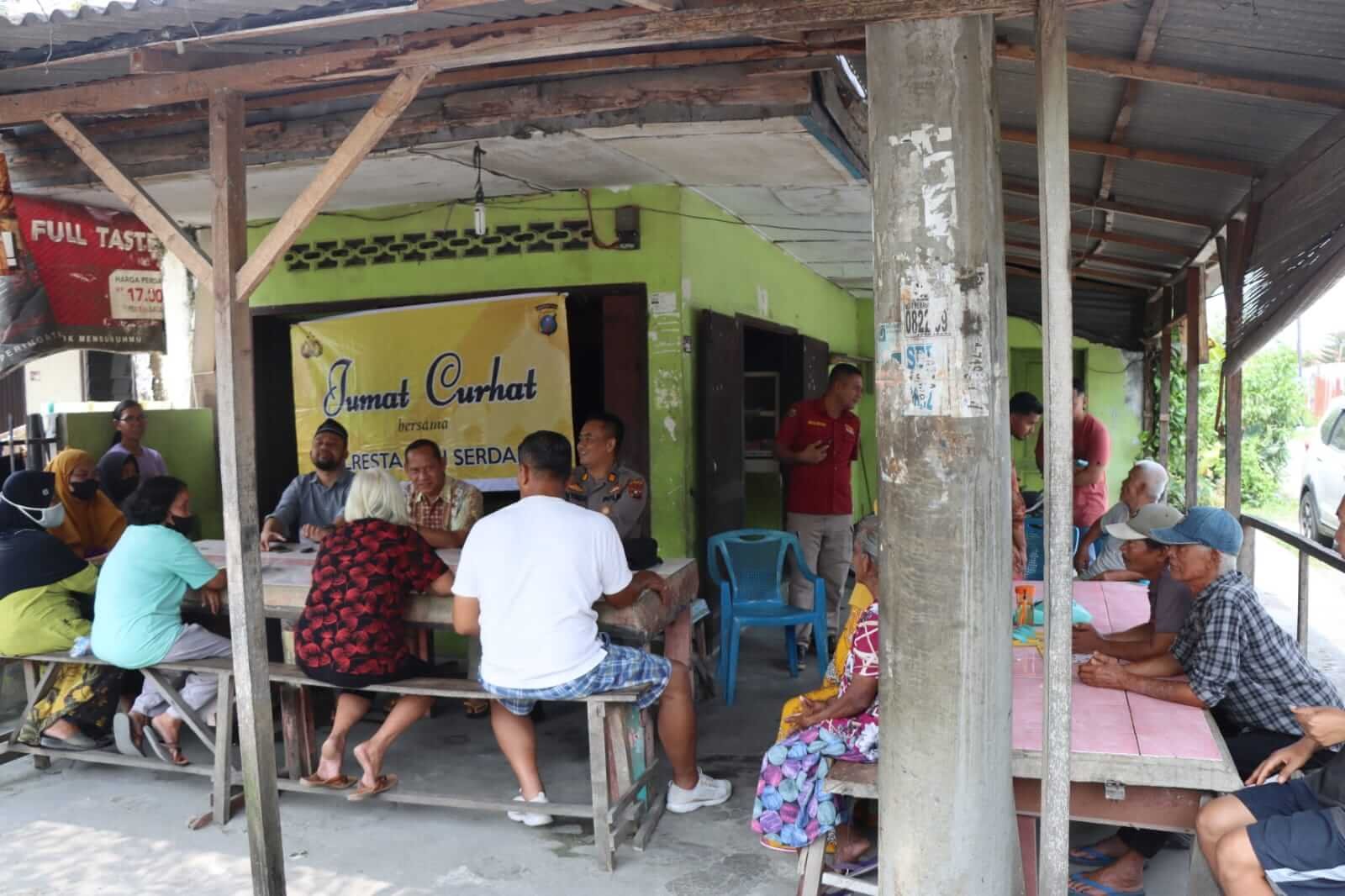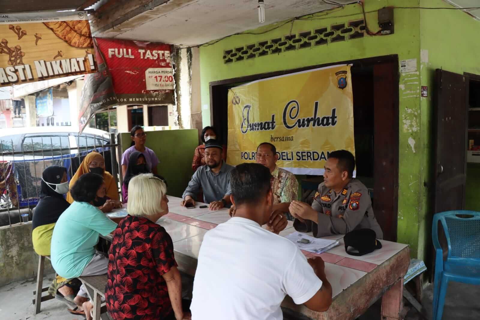 Deli Sedang Jumat (14/04/23) Kapolresta Deli Serdang yang diwakili oleh Kabag SDM Polresta Deli Serdang Akp Slamet Riyadi, SH, MH., duduk bersama warga diwarung Pak Febrian yang beralamat di Simpang IV Jln WR Supratman Pasar V Kecamatan Lubuk Pakam Kabupaten Deli Serdang.