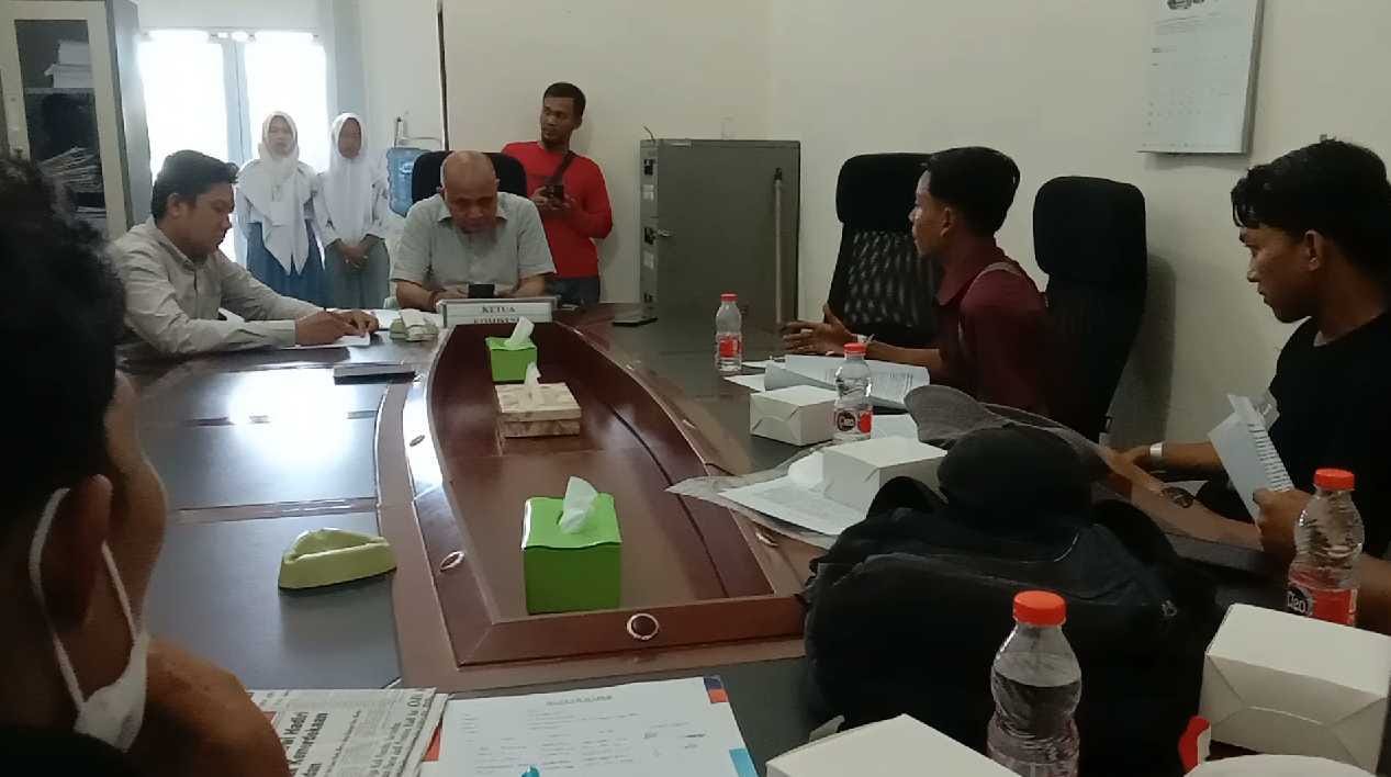 Para pengunjuk rasa (Pendemo) disambut oleh H. Darius, SH, MH beserta anggota dewan lainnya diruang Komisi 1 DPRD Batu Bara, Senin (28/08/2023).