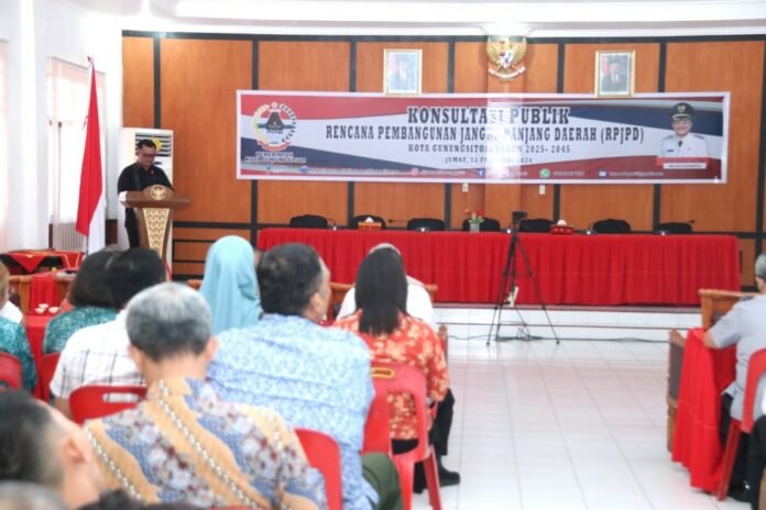 Gunungsitoli (23/02/2024), Wali Kota Gunungsitoli Sowa’a Laoli, SE, M.Si membuka secara resmi Forum Konsultasi Publik Rancangan Awal Rencana Pembangunan Jangka Panjang Daerah (RPJPD) Kota Gunungsitoli Tahun 2025-2045, bertempat di Ruang Rapat II Kantor Wali Kota Gunungsitoli, Jumat 23 Februari 2024.
