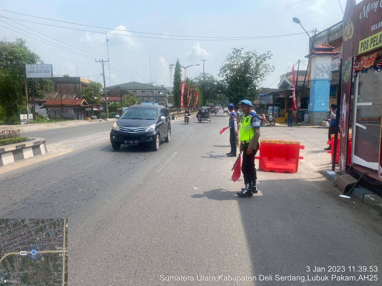 Hari ketiga di Bulan Januari 2023, pasca perayaan malam Tahun baru, Sat Lantas Polresta Deli Serdang Giat Pengaturan Lalu Lintas di Sepanjang jalan. Selasa (03/01/23).