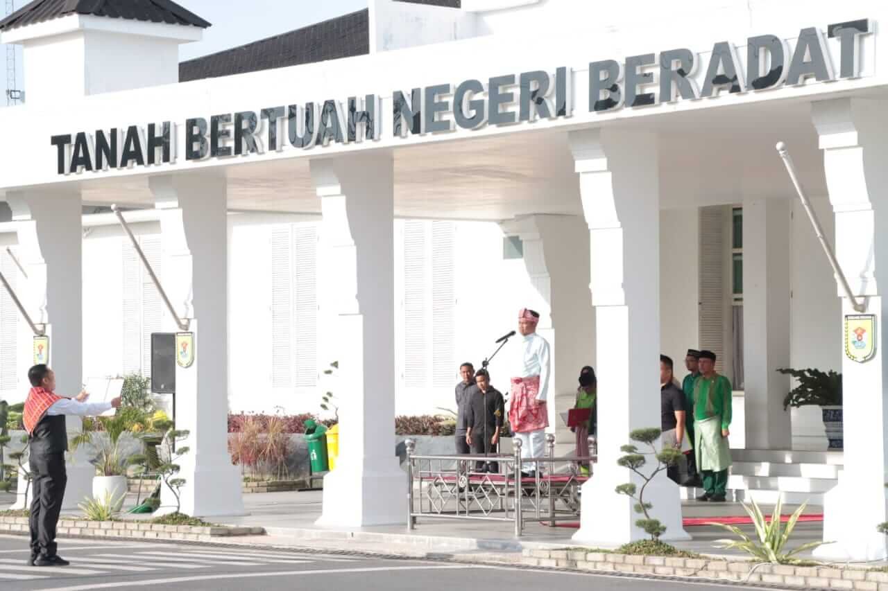 Bupati Serdang Bedagai (Sergai) H. Darma Wijaya dengan memakai pakaian adat Melayu bertindak sebagai Inspektur Upacara (Irup) dalam peringatan Hari Lahir Pancasila 1 Juni 1945 – 1 Juni 2023, bertempat di Halaman Kantor Bupati Sergai, Sei Rampah, Kamis (1/6/2023) Pagi 08.30 Wib.