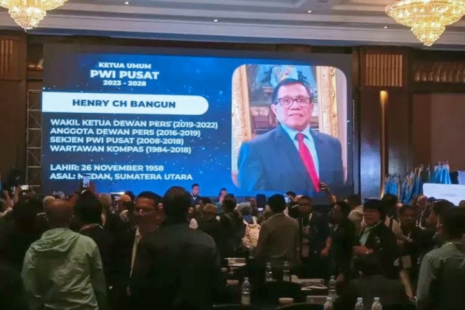 Hendrik CH Bangun akhirnya terpilih sebagai Ketua Umum Persatuan Wartawan Indonesia (PWI) Pusat Periode 2023 – 2028 yang dilaksanakan di Ball Room Hotel El Bandung Provinsi Jawa Barat, Selasa malam.