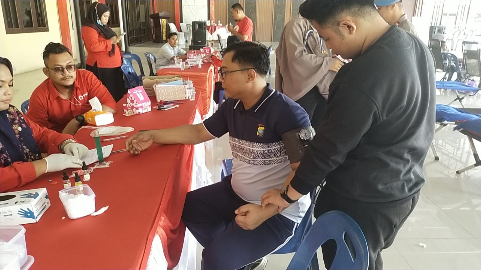 Sebelum dilakukan donor darah, para pendonor menjalani pemeriksaan kondisi kesehatan terlebih dahulu dan pemeriksaan hemoglobin (HB). “Donor darah hanya bisa dilakukan bagi yang memenuhi syarat,” Ucapnya.