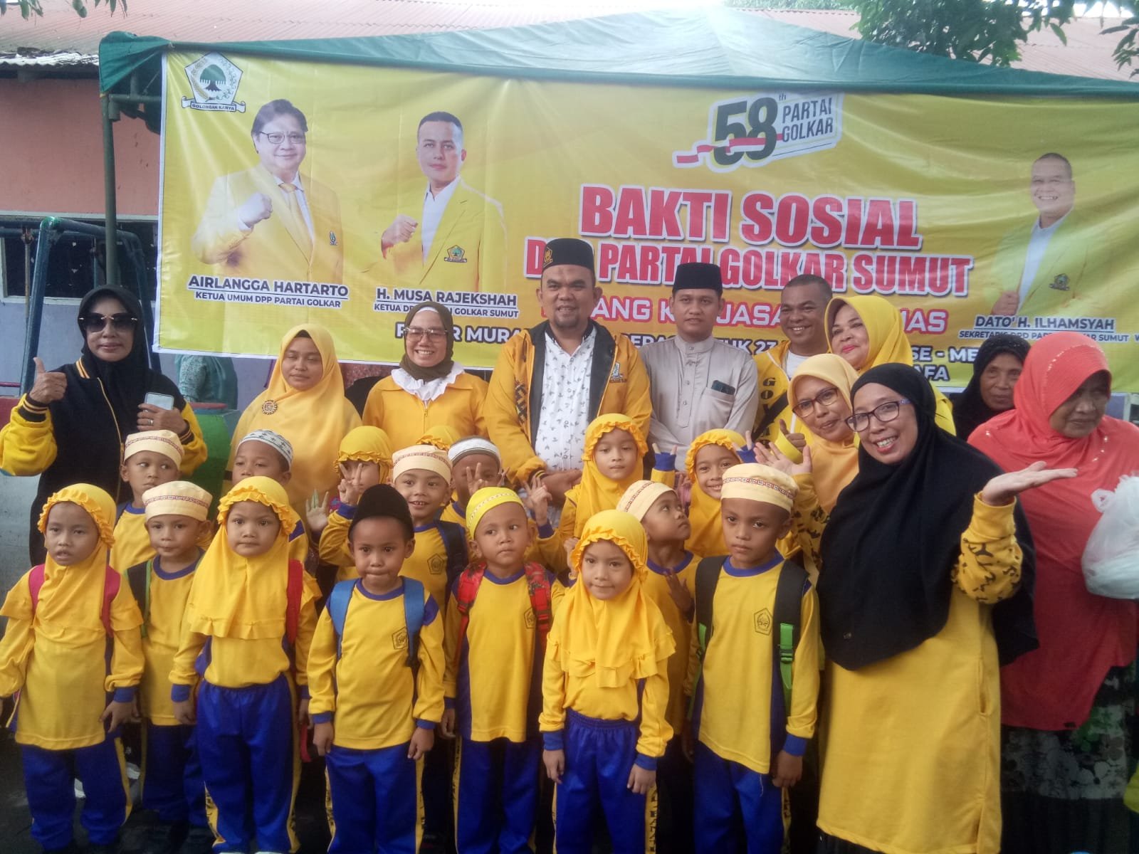 Dalam rangka HUT Partai Golkar ke 58 tahun digelar kegiatan bakti sosial (baksos) bagi kaum duafa dan santunan bagi anak yatim piatu sebanyak 58 paket sembako sekaligus digelar pasar murah di empat titik di kawasan Medan Utara.