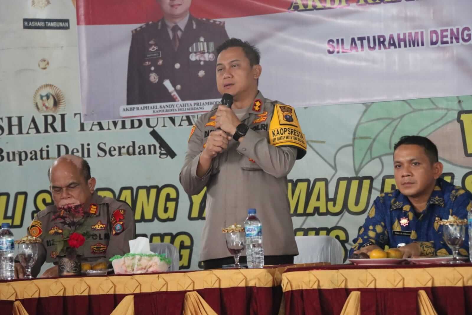 Dalam agenda kunjungannya kepada Muspika dan tokoh-tokoh di Wilayah Hukum Polresta Deli Serdang tersebut, Kapolresta Deli Serdnag AKBP Raphael Sandhy Cahya Priambodo, SIK, menyampaikan pesan-pesan kamtibmas, antara lain agar bersinergi dengan Polri dalam menjaga dan memelihara kamtibmas yang tetap kondusif menjelang dan pada pelaksanaan pemilu damai di tahun 2024.