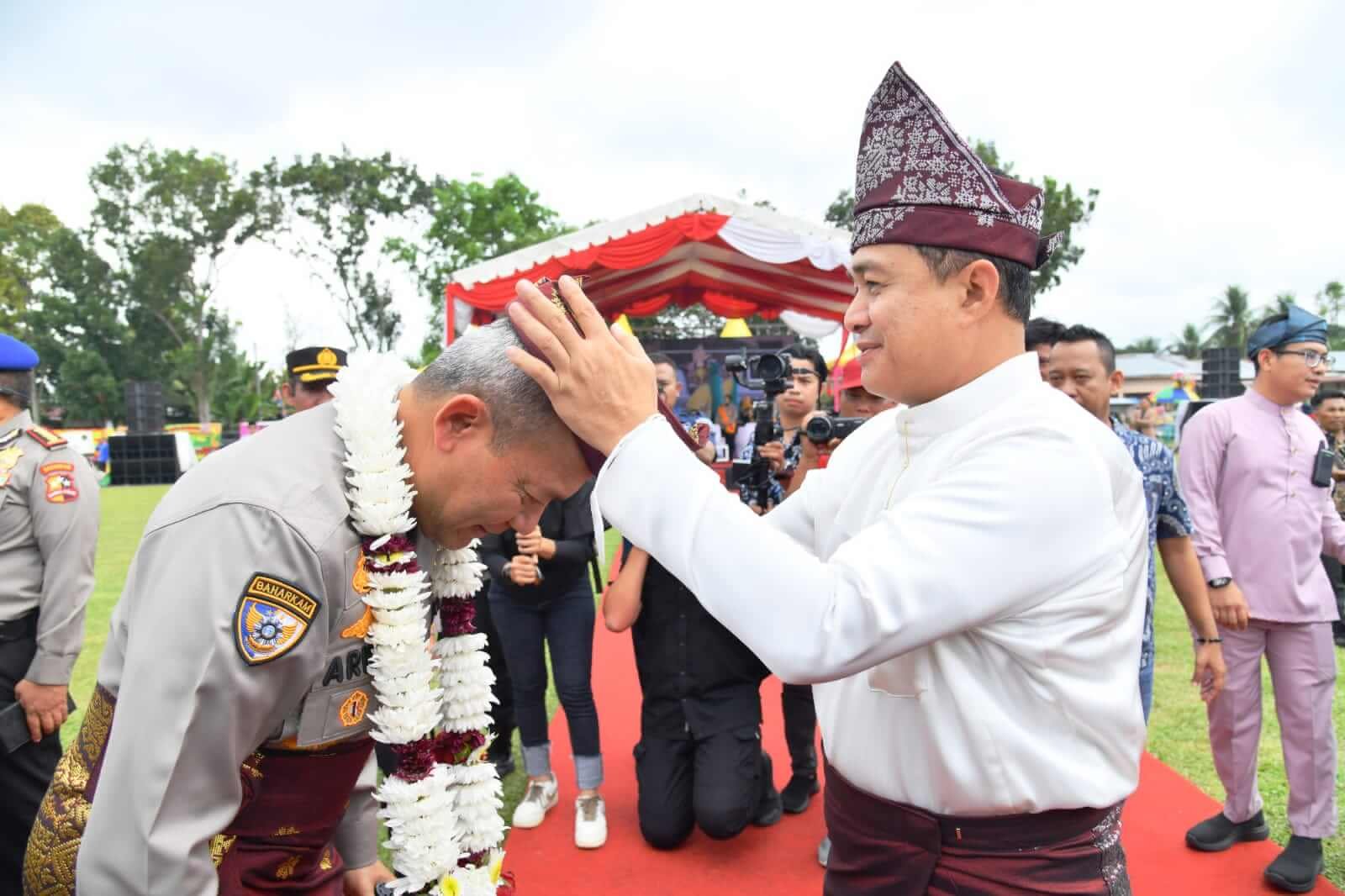 Kepala Badan Pemelihara Keamanan (Kabaharkam) Komisaris Jenderal Polisi Dr. Drs. Arief Sulistyanto, M.Si berkunjung Ke Kabupaten Batu Bara, kehadirannya dipakaikan kain songket Batu Bara serta tengkuluk.