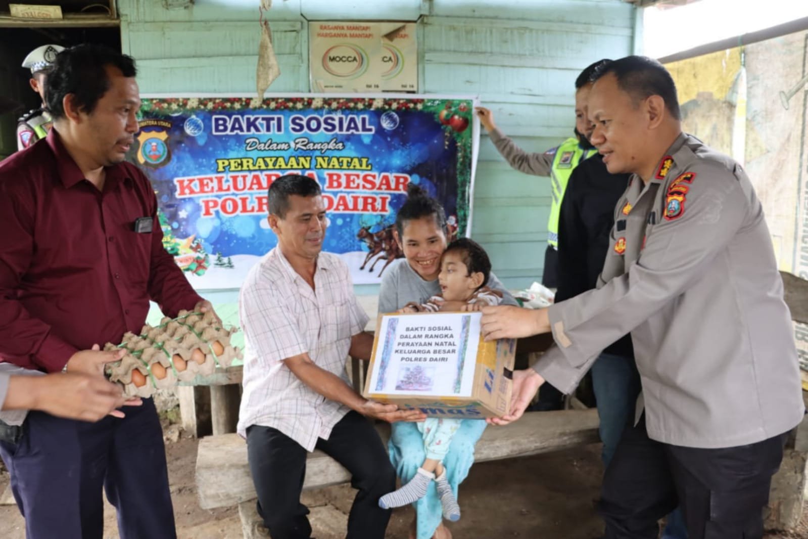 Kapolres Dairi AKBP Wahyudi Rahman, S.H, S.I.K, M.M memberikan bantuan berupa sembako kepada Masyarakat Kurang Mampu dan penyandang Disabilitas di Kecamatan Sidikalang Kabupaten Dairi dalam rangka Menyambut Natal dan Tahun Baru. Selasa 13-12-2022.
