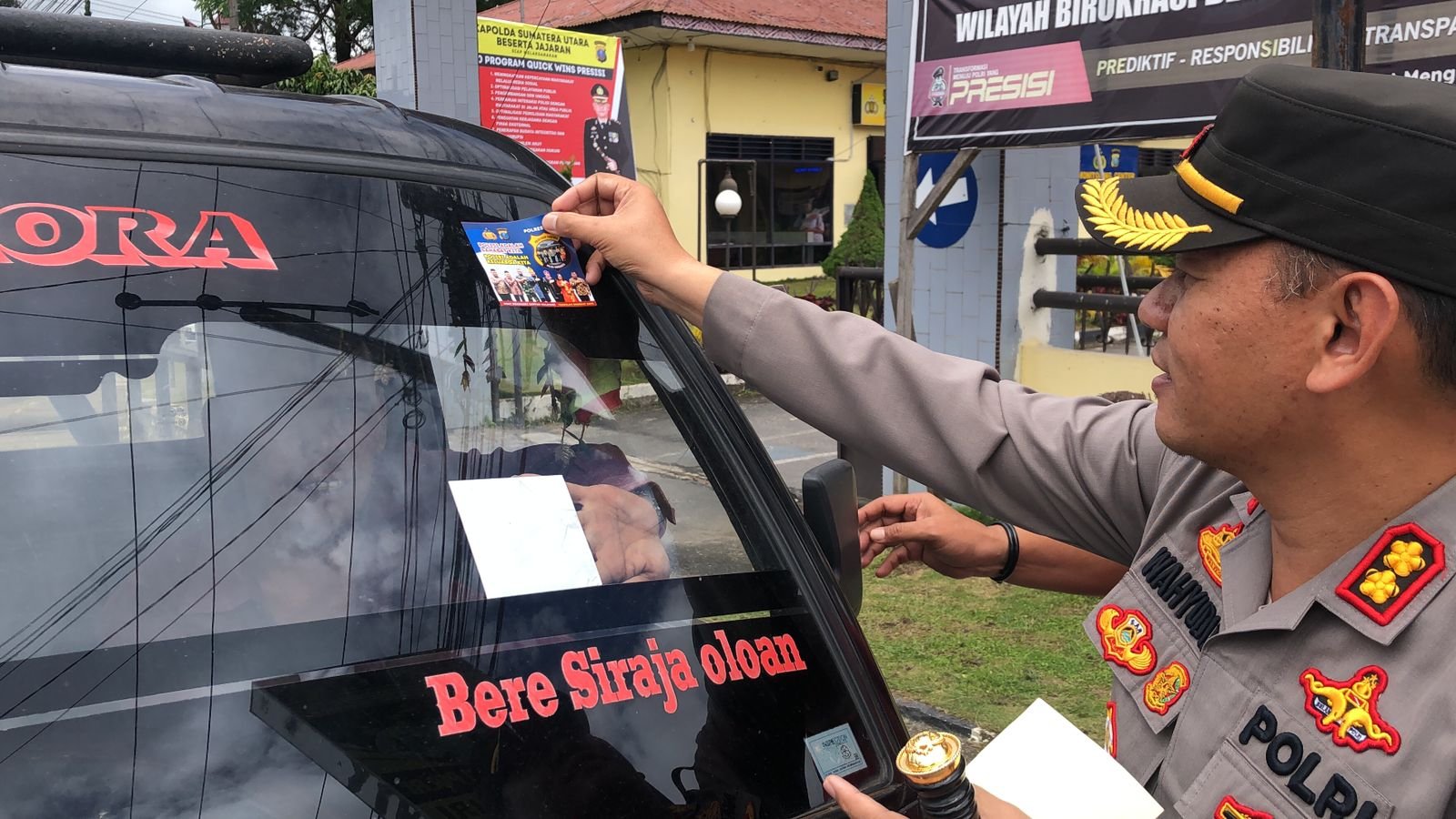 Kapolres Dairi AKBP WAHYUDI RAHMAN, SH, S.I.K, M.M. turun ke lapangan melakukan pembagian stiker kepada warga