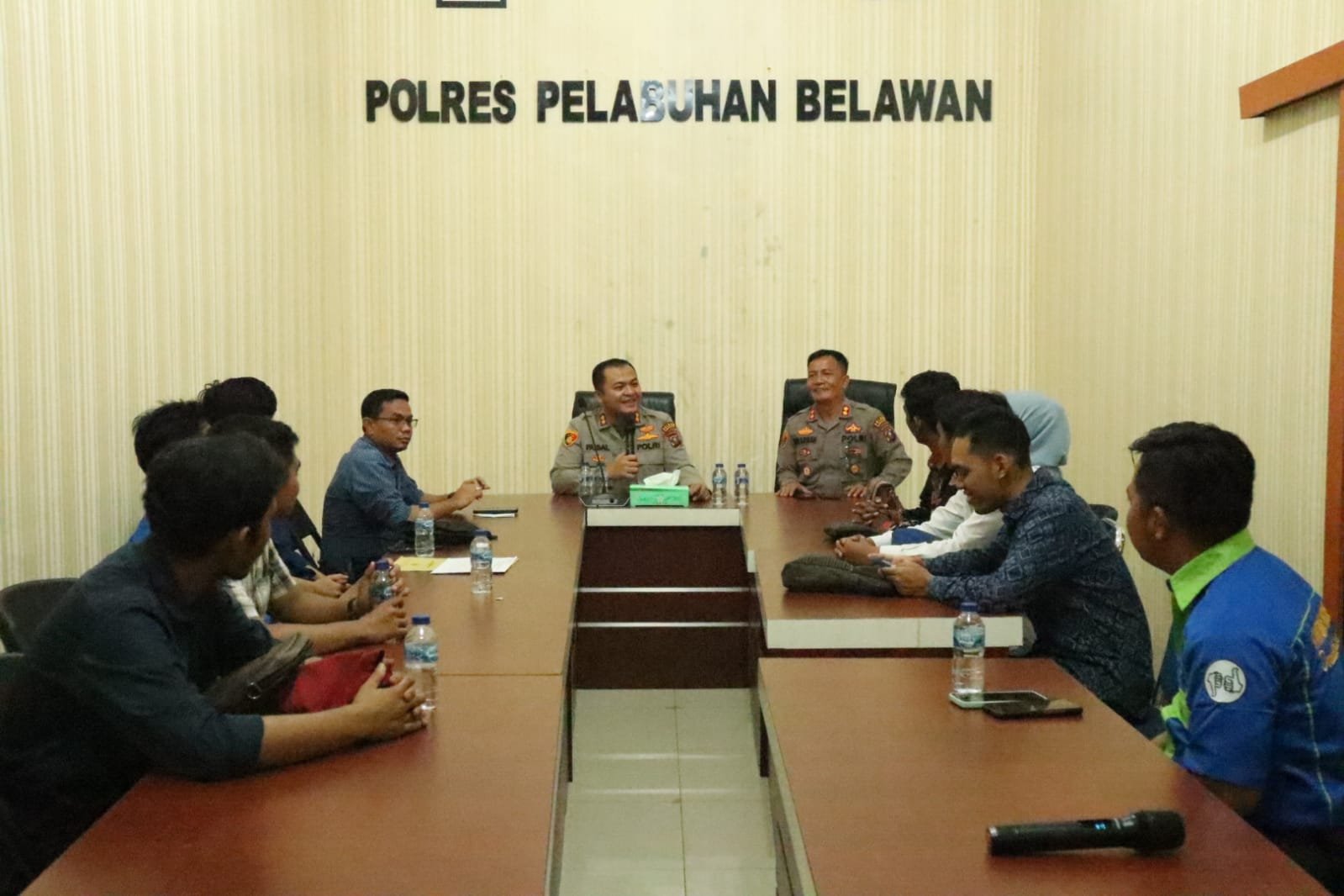 Kapolres Labuhan Belawan Faisal Rahmat H.S., SIK., SH.MH. Audensin dengan mahasiswa Di Ruangan