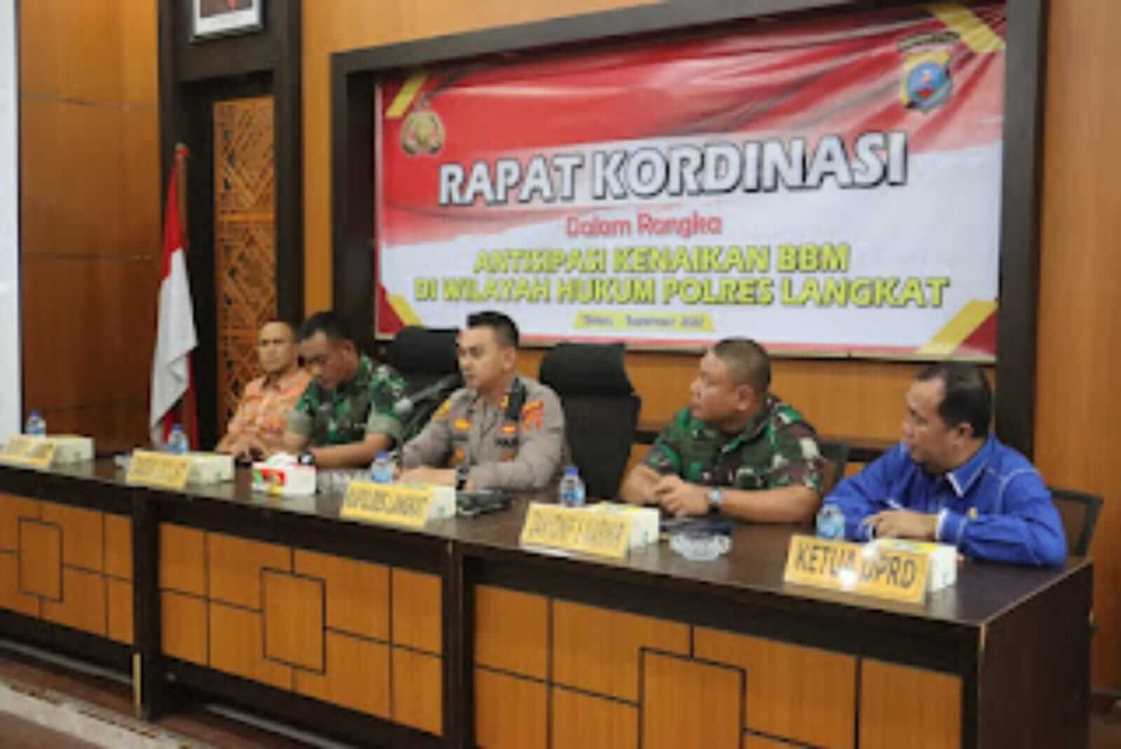 Usai rapat koordinasi Kapolres Langkat melalui Kasi Humas AKP Joko Sumpeno menyampaikan kepada wartawan bahwa sampai saat ini belum ada kabar kenaikan BBM. Pihaknya masih tetap melakukan antisipasi kenaikan, namun perlu digaris bawahi bahwa tugas pokok Polres Langkat dengan perbantuan unsur TNI serta Pemerintah Kabupaten Langkat.
