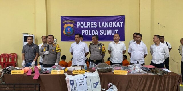 Selanjutnya Kapolres Langkat AKBP Faisal Rahmat. H. Simatupang, SIK. SH. MH menjelaskan penangkapan terhadap tersangka kasus narkoba jenis daun ganja kering sebanyak 30,7Kg yang dibungkus dengan karung berwarna putih di SPBU Kampung Lalang Kecamatan Besitang Kabupaten Langkat dengan tersangka sebanyak 3 (tiga) orang berinisial MS (39) warga Aceh, SR (28) warga Aceh dan DH warga Kota Pekanbaru.