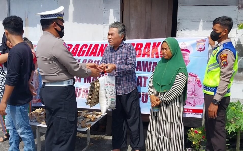 Polres Pelabuhan Belawan melalui Sat Lantas Polres Pelabuhan Belawan membagikan bantuan sosial pada masyarakat yang membutuhkan. Kegiatan tersebut dilaksanakan pada Rabu (16/11/2022) sekira pukul 11.00 Wib.
