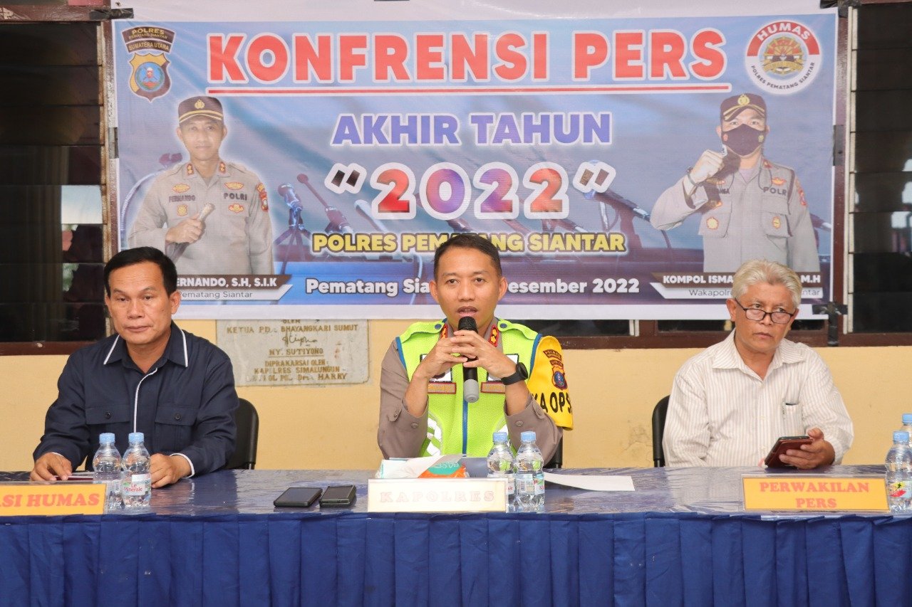 Hal itu dipaparkan Kapolres Pematang Siantar AKBP Fernando SH, SIK didampingi Kasat Reskrim AKP Banuara Manurung SH, Kasatres Narkoba AKP Rudi Panjaitan SH, Kasi Humas AKP Rusdi Ahya SH dan Kasi Provos IPDA Moses Butar-butar SH saat memimpin Press Rilis situasi Keamanan dan Ketertiban Masyarakat (Kamtibmas) diwilayah hukum Polres Siantar selama tahun 2022, Jumat ( 30/12/2022) sore bertempat didepan ruangan Satres Narkoba kota setempat.