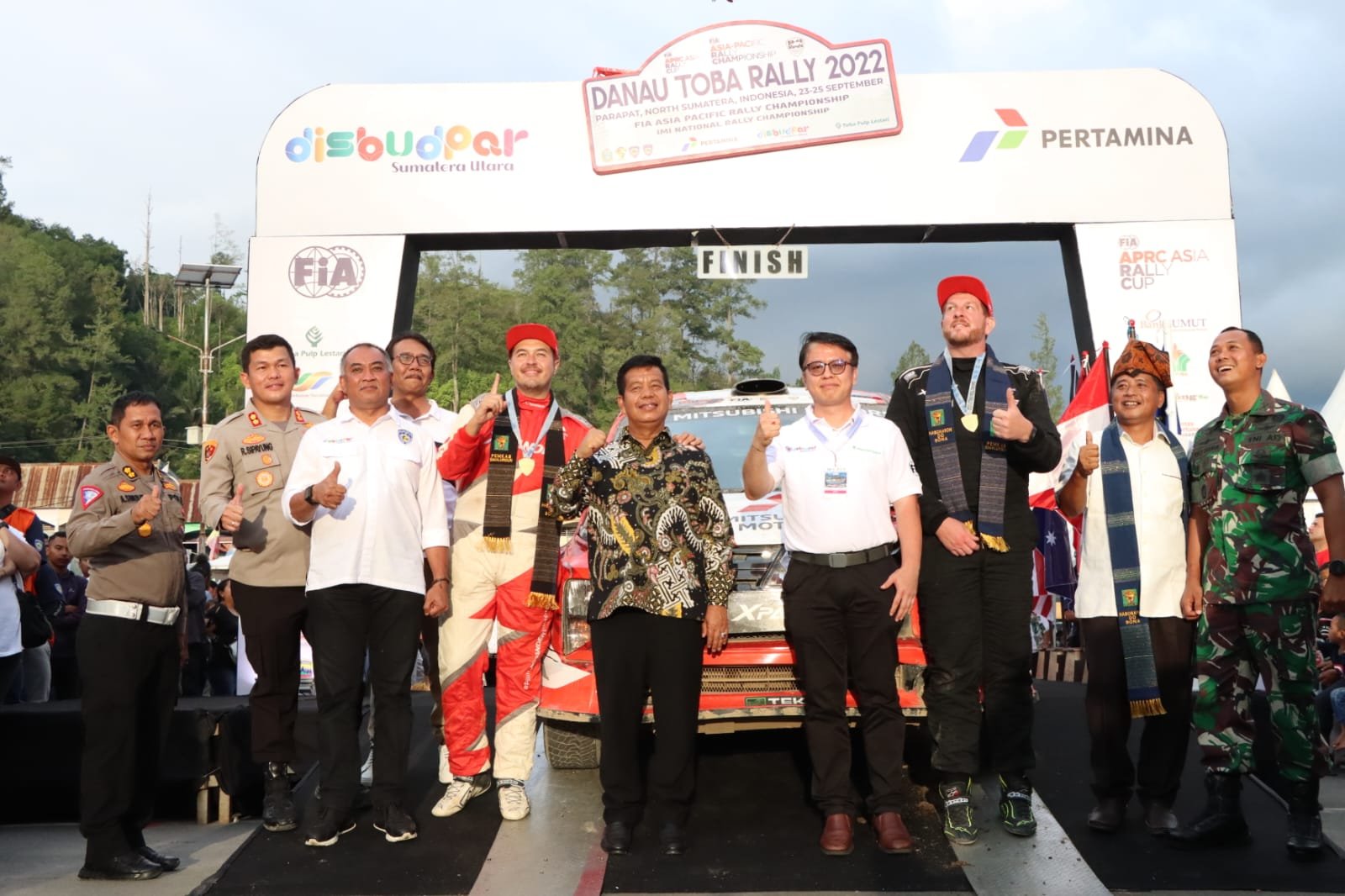 Dari Hasil Perlombaan Federation Internationale de I’Automobile (FIA) Steward umumkan Mitsubishi Xpander Rally Team Rifat Sungkar co-drivernya Benjamin Richard sebagai juara Asia Pasific Rally Championship (APRC) Danau Toba Tahun 2022 dan Musa Rajekshah sebagai peringkat kedua.