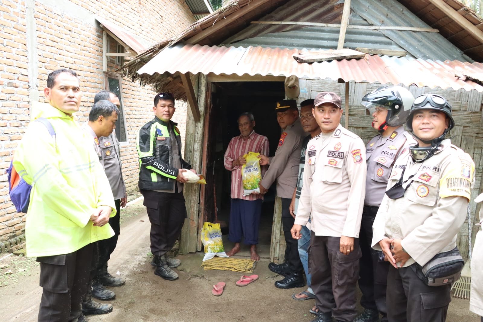 Selama perjalanan dari Polsek Serbalawan menuju Polsek Raya Kahean, Kapolres Simalungun memberikan paket sembako kepada masyarakat yang kurang mampu.