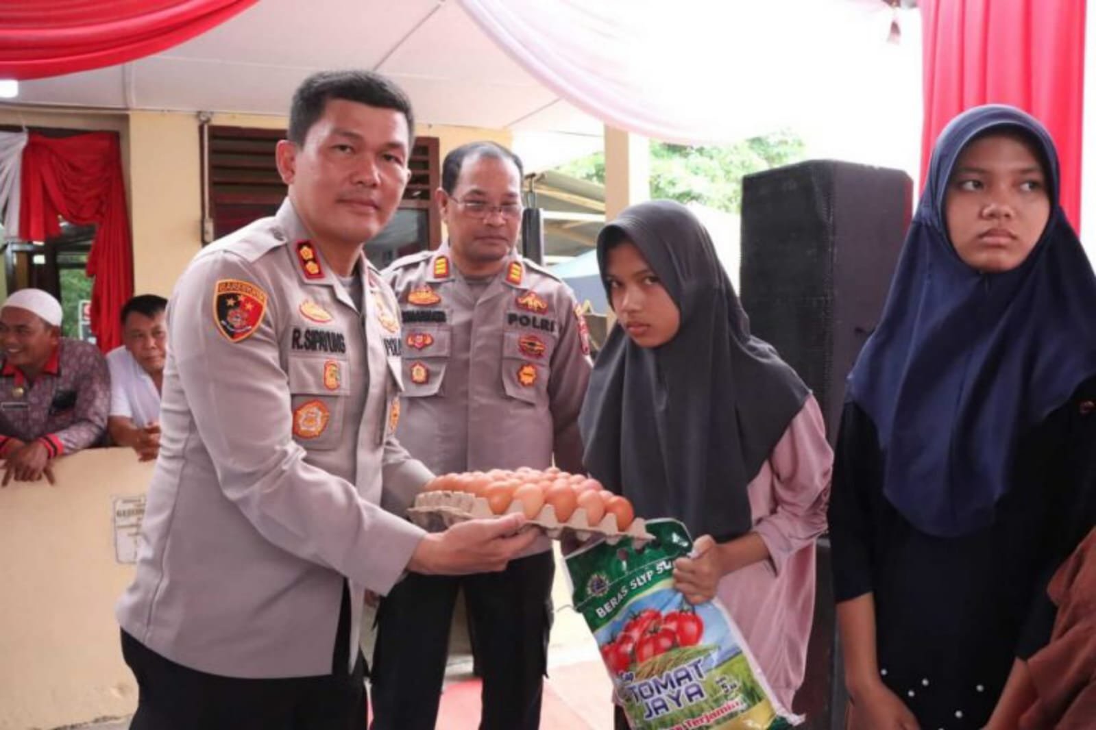 Kapolres Simungun AKBP Ronald F.C Sipayung, S.H., S.I.K., M.H membagikan Paket Sembako dan dana tunai kepada anak yatim piatu,
