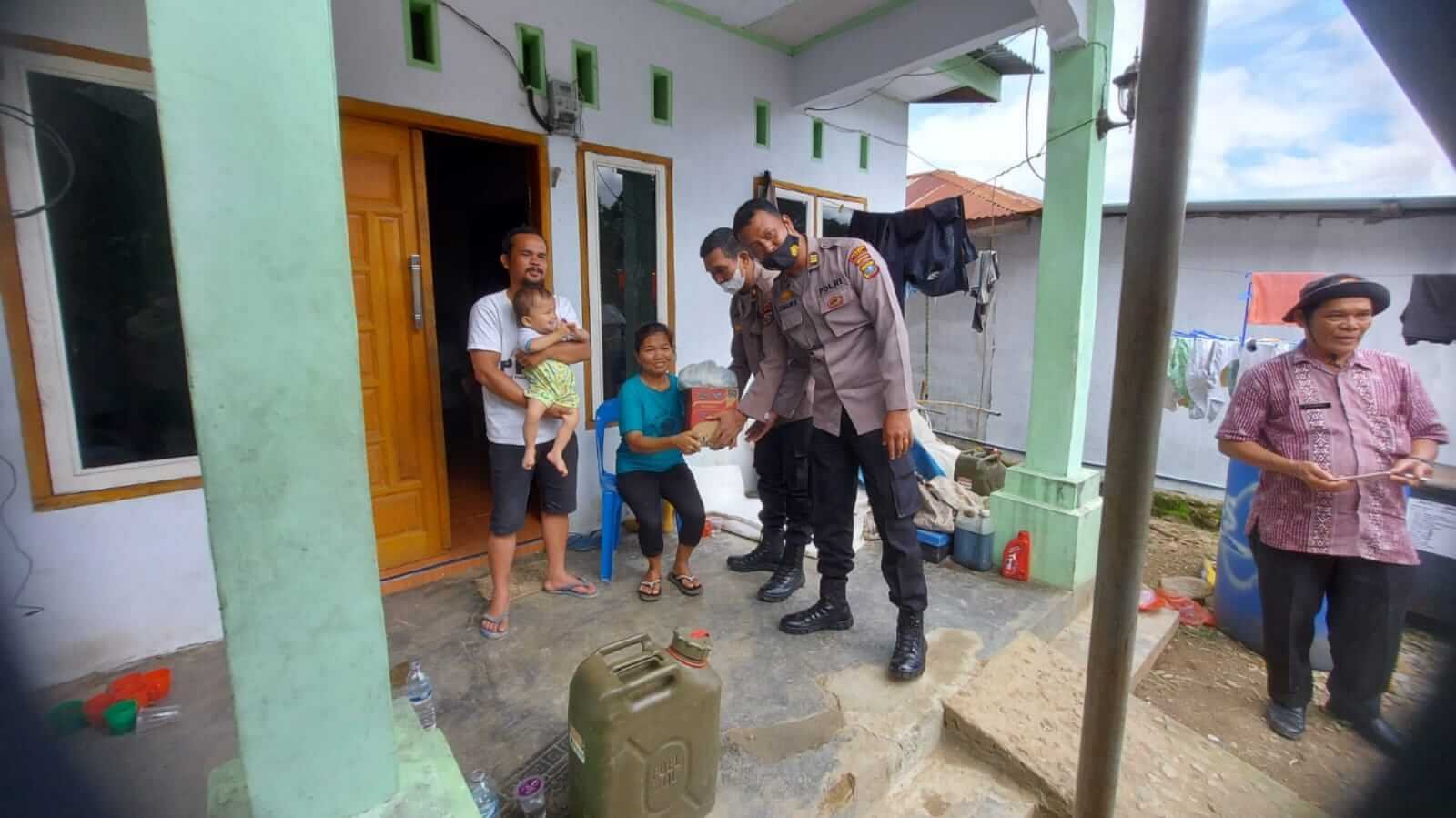 Kapolres Toba AKBP Taufiq Hidayat Thayen ,S.H,S.I.K bersama personil datang ke lokasi berbagi kepada terkena bencana alam