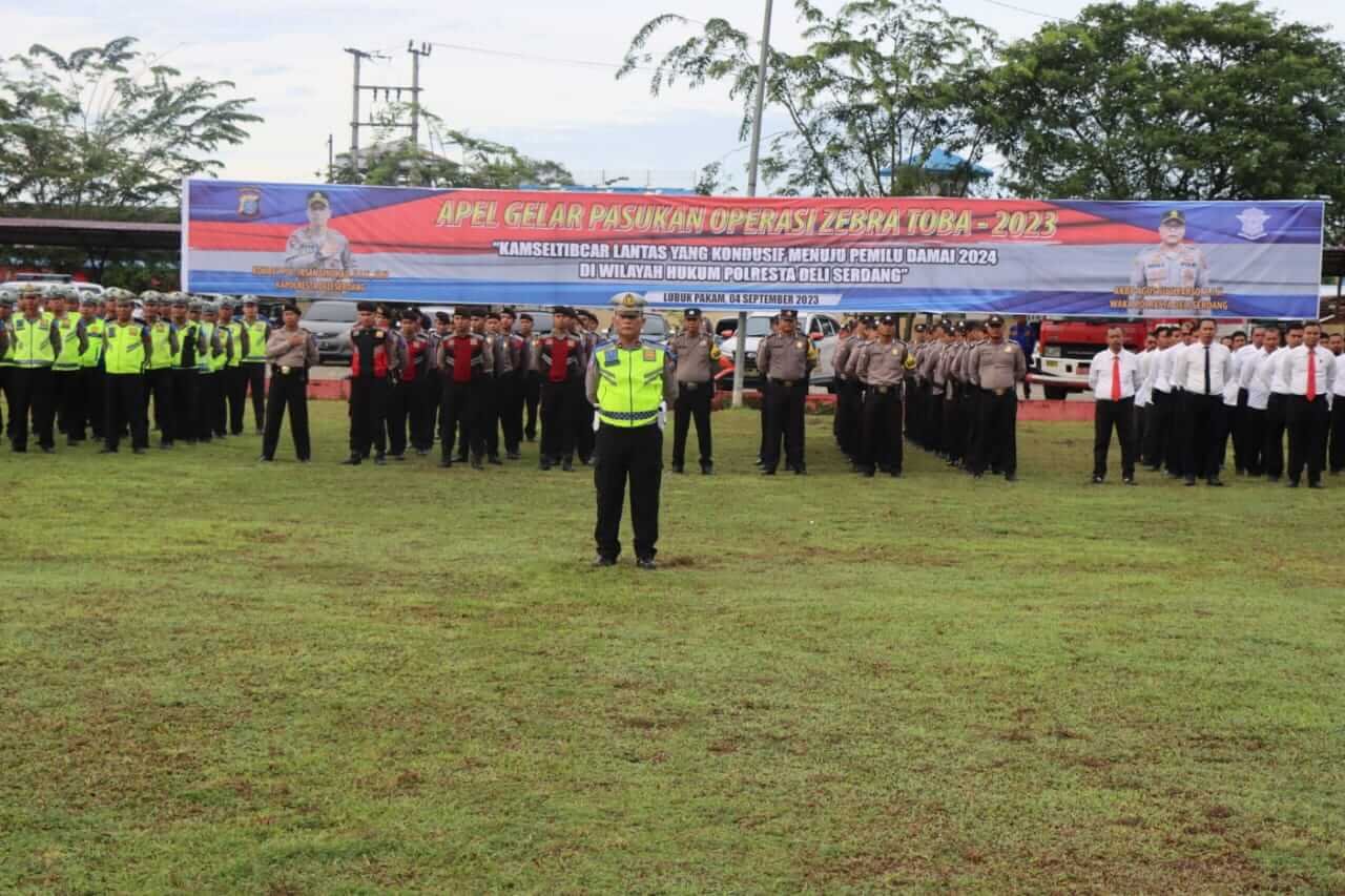 Kapolresta Deli Serdang Kombes Pol Irsan Sinuhaji,SIK, MH, pimpin pelaksanaan apel gelar pasukan Operasi Zebra Toba 2023 bertempat di Lapangan Hijau Polresta Deli Serdang. Senin (04/09/2023).