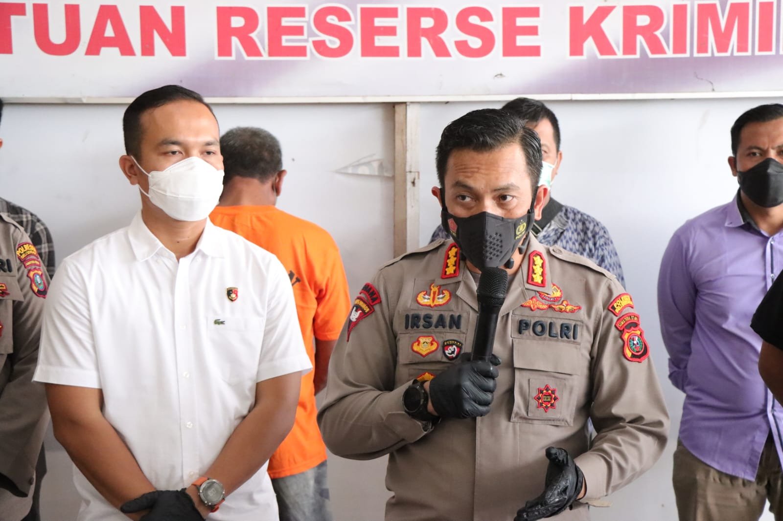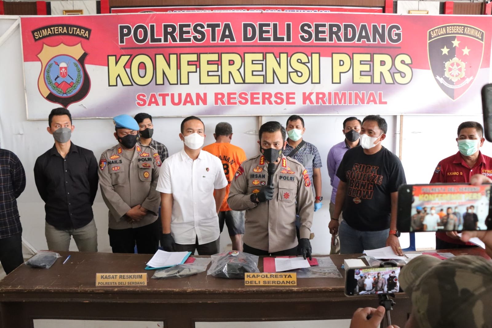 Kapolresta Deli Serdang, Kombes Pol Irsan Sinuhaji SIK MH didampingi Kasat Reskrim Polresta Deli Serdang Kompol I Kadek H. Cahyadi, SH, SIK, MH, pimpin Konferensi Pers Kasus Penganiayaan berat yang sempat viral di Media sosial belakangan ini. Kegiatan Konferensi pers ini berlangsung di Aula Terbuka Mapolresta Deli Serdang, Selasa (20/09/22)
