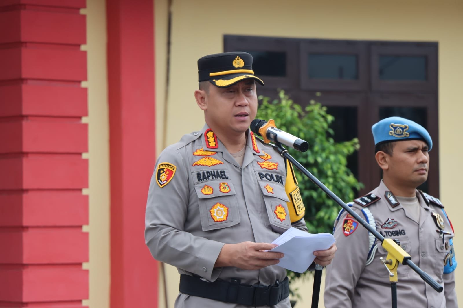 Lubuk Pakam: Kapolresta Deli Serdang Kombes Pol Raphael Sandhy Cahya Priambodo, SIK, Pimpin langsung Upacara Kenaikan Pangkat Personil Polresta Deli Serdang, Periode 01 Januari 2024, dilapangan Apel Polresta Deli Serdang, Senin (01/01/2024).