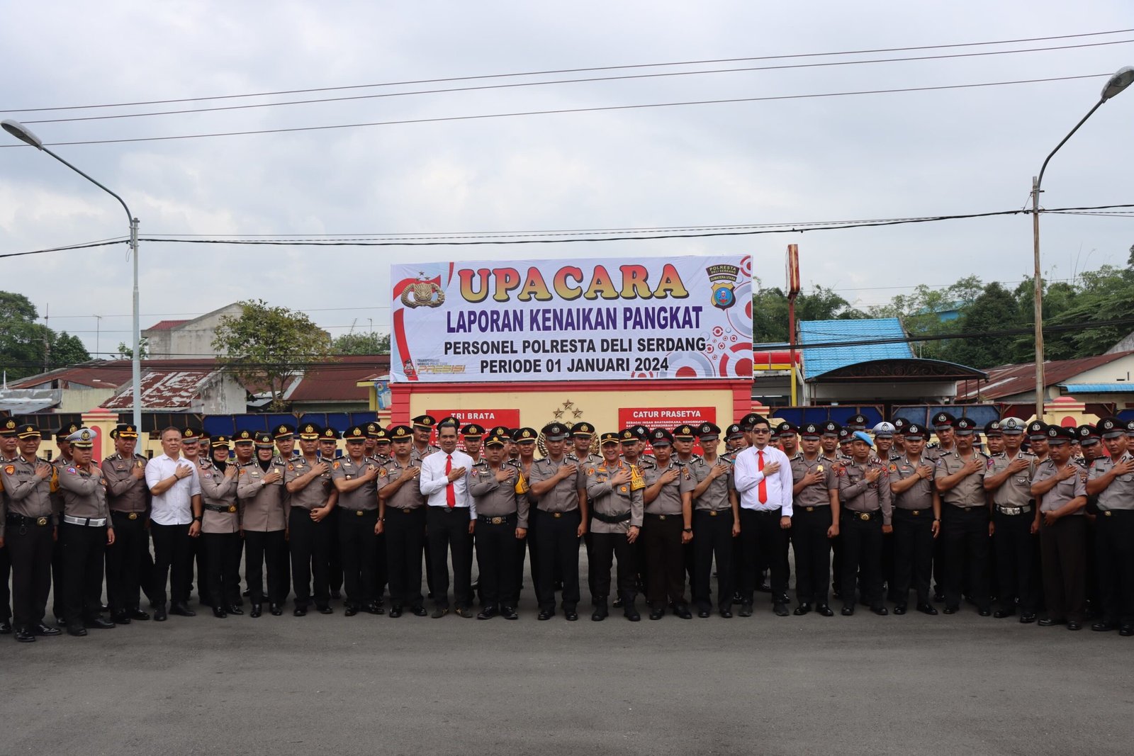 Upacara Kenaikan Pangkat Personil Polresta Deli Serdang Periode 01 Januari 2024 berjumlah 87 Personil, dengan rincian dari AKP ke Kompol 1 Personil, IPTU ke AKP 13, IPDA ke IPTU 13 Personil, Aipda ke Aiptu 16 Personil, Bripka ke Aipda 5 Personil, Brigpol ke Bripka 3 Personil, Briptu ke Brigpol 35 Personil dan Bripda ke Briptu 1 Personel.