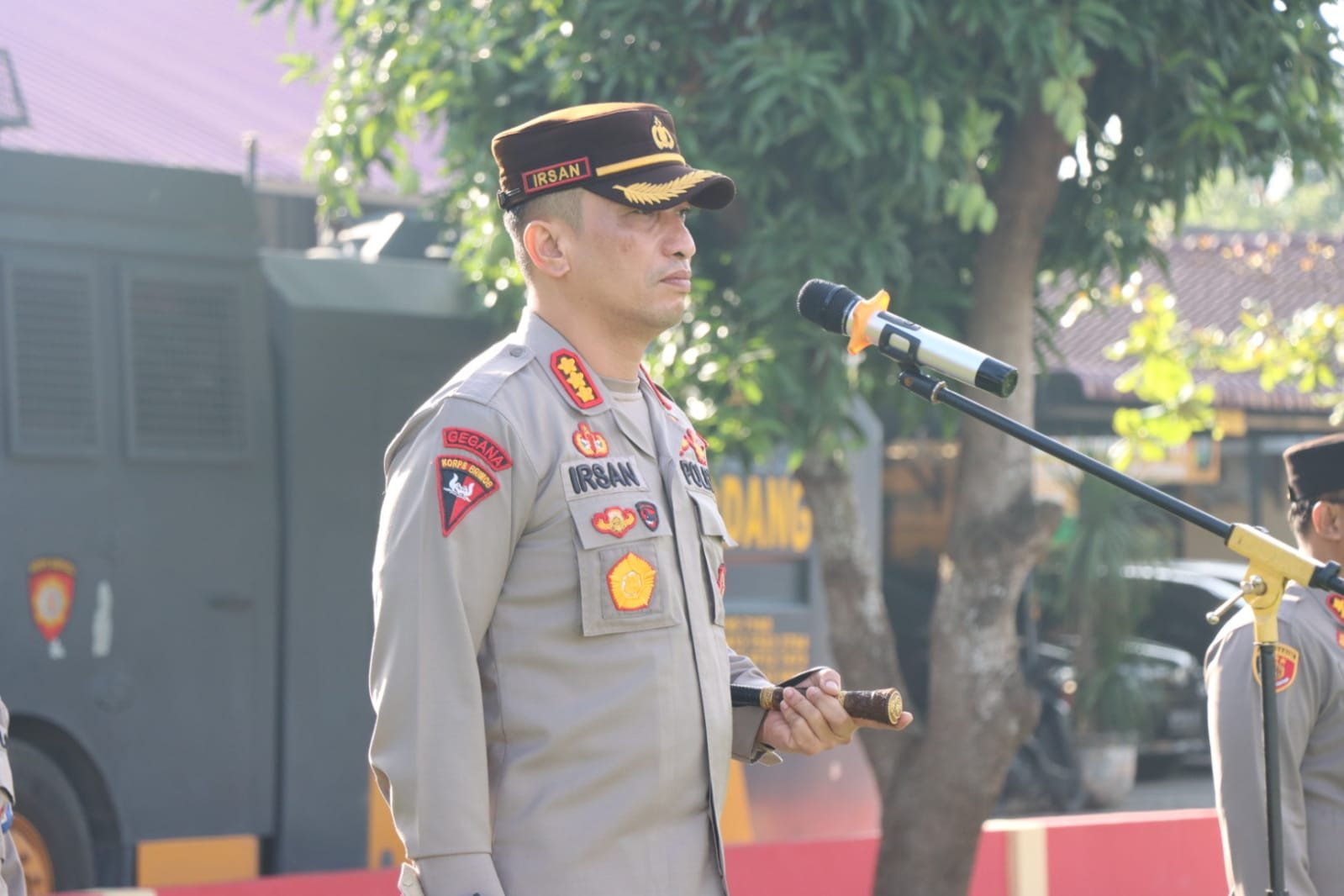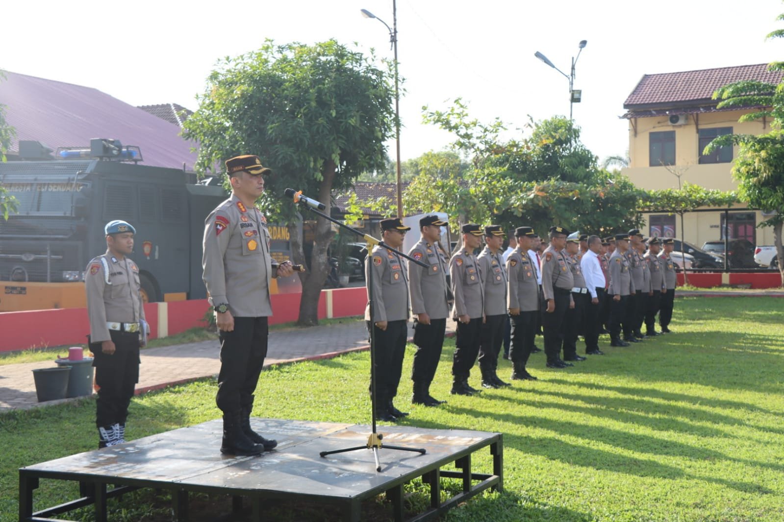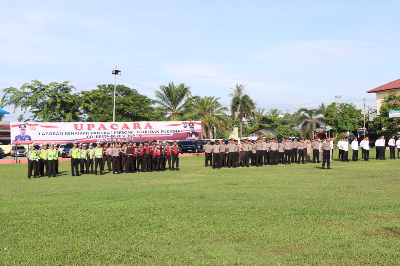 Kapolresta Deli Serdang Kombes Pol. Irsan Sinuhaji, SIK, MH pimpin Upacara Kenaikan Pangkat sejumlah 50 Personil Polri dan ASN Polresta Deli Serdang Periode 01 Juli 2023 dihadiri oleh para PJU, Kasat dan Kapolsek sejajaran Polresta Deli Serdang di lapangan Apel Polresta Deli Serdang, Jumat (30/06/2023).