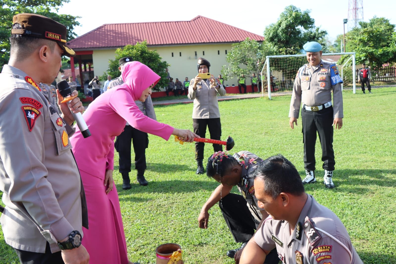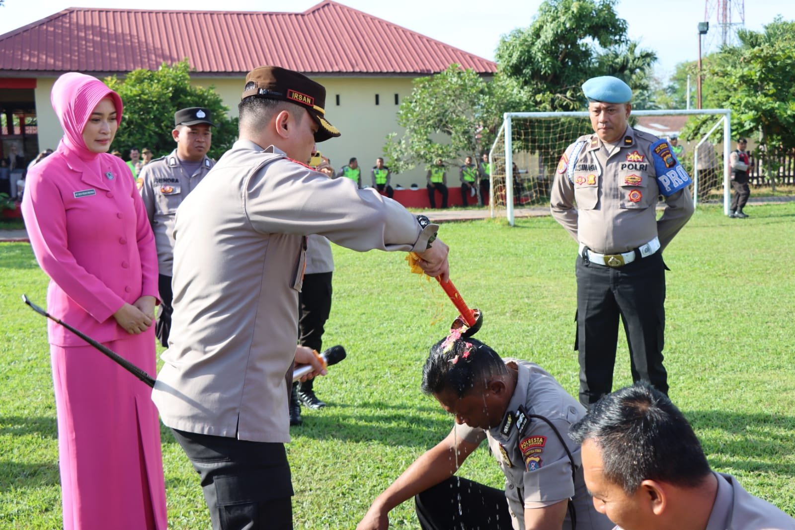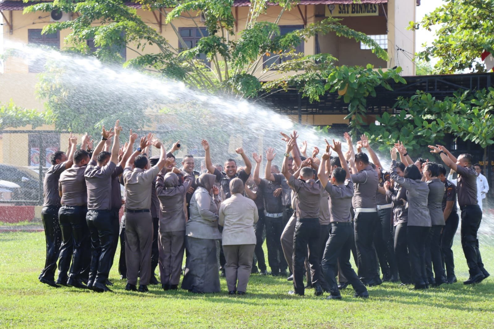 Diakhir kegiatan dilanjutkan dengan acara tradisi penyiraman air bunga kepada personil yang naik pangkat serta siraman air dari mobil water Canon.