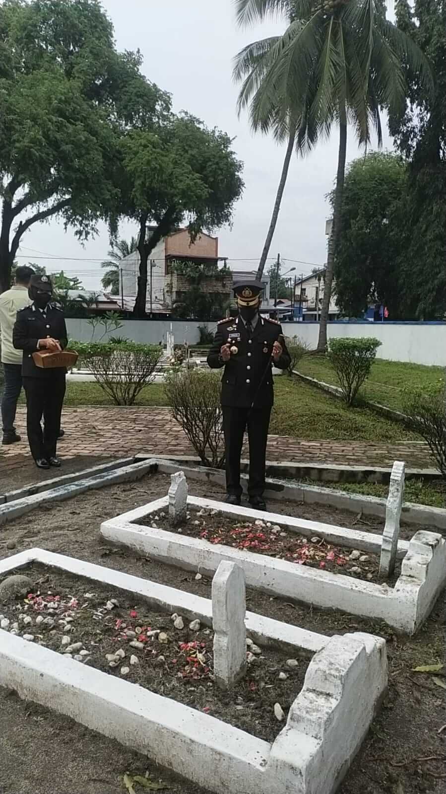 Kapolresta Deli Serdang Kombes Pol Irsan Sinuhaji SIK, MH memimpin upacara Ziarah Nasional dalam rangka Peringatan Hari Pahlawan ke-77 tahun 2022. Upacara yang digelar dengan konsep minimalis tersebut berlangsung di Taman Makam Pahlawan (TMP) Lubuk Pakam, Kamis (10/11/2022) pagi.