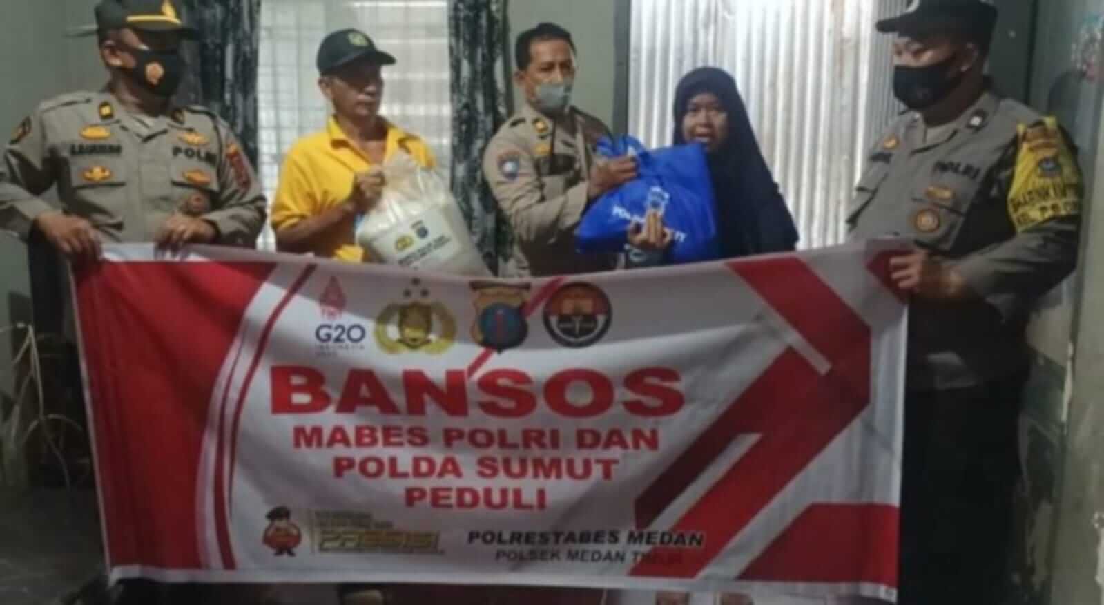 Polsek Medan Timur menyalurkan bantuan sosial (bansos) dari Kapolri Jenderal Listyo Sigit Prabowo kepada warga kurang mampu di wilayah hukumnya, Senin (14/11/2022) sore.