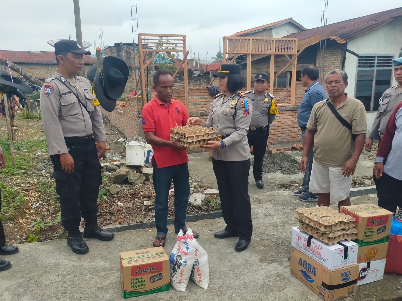 Kapolsek Siantar Marihat, AKP Relina Lumban Gaol S.Sos memberikan bantuan sosial (Bansos) kepada warga yang rumahnya terbakar di Jalan Mangga Ujung Siabal abal Gang Mawar, Kelurahan BP Nauli, Kecamatan Siantar Marihat, Kota Pematangsiantar, Jumat, 22 Maret 2024 sekira pukul 09.00 Wib.