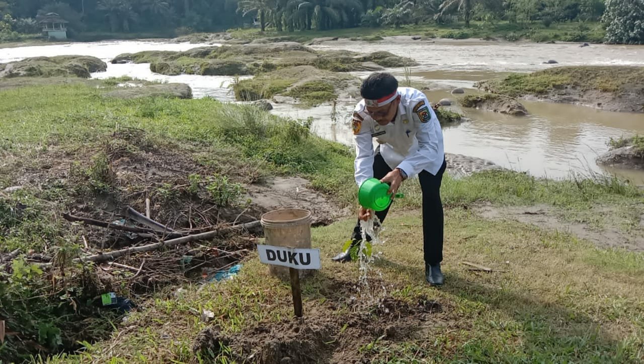 Kapolsek Sipispis AKP GUNAWAN EFFENDI.SH bersama Muspika Sipispis serta Personil Polsek sipispis,Serdang Bedagai,dan warga melaksanakan  Penghijauan di bantaran sungai bah bolon